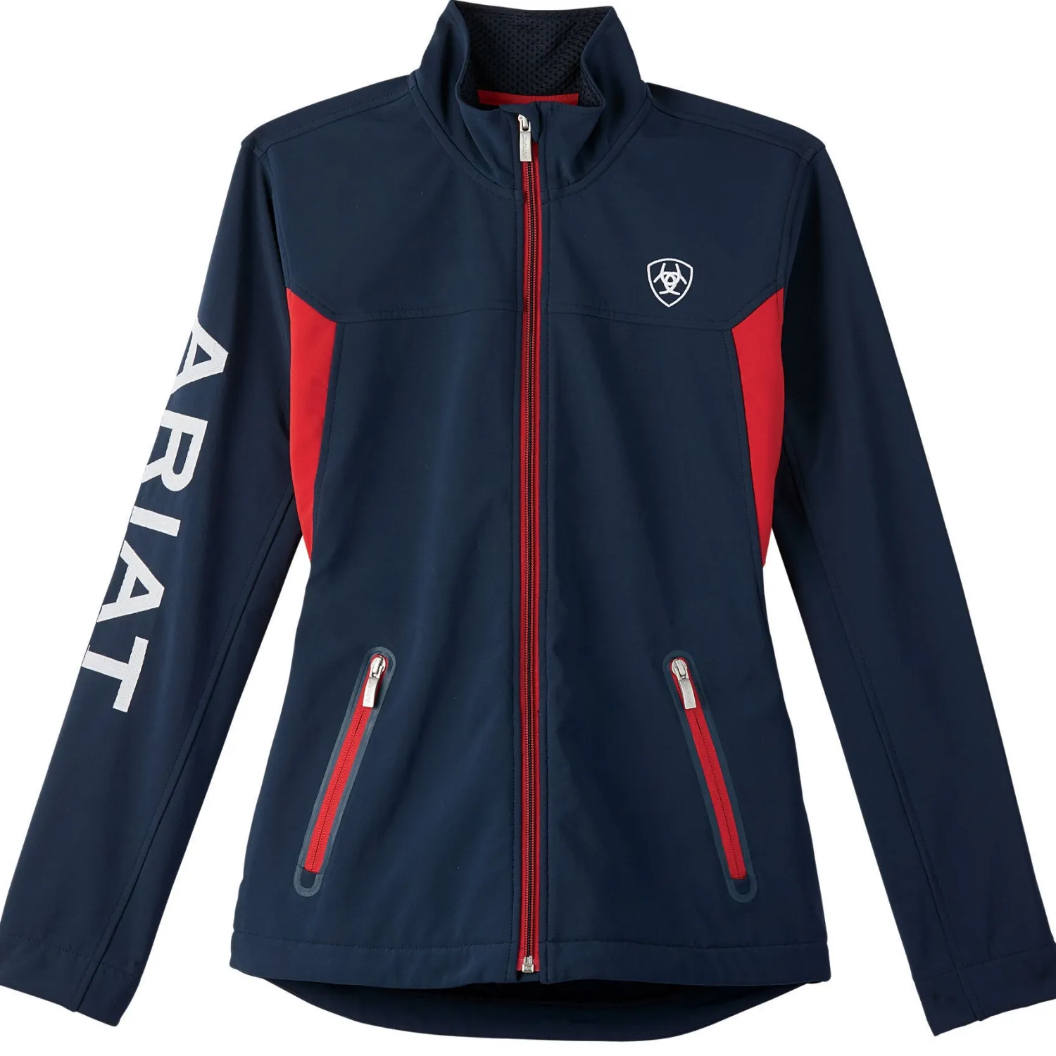 - Ariat® team branding at right arm.