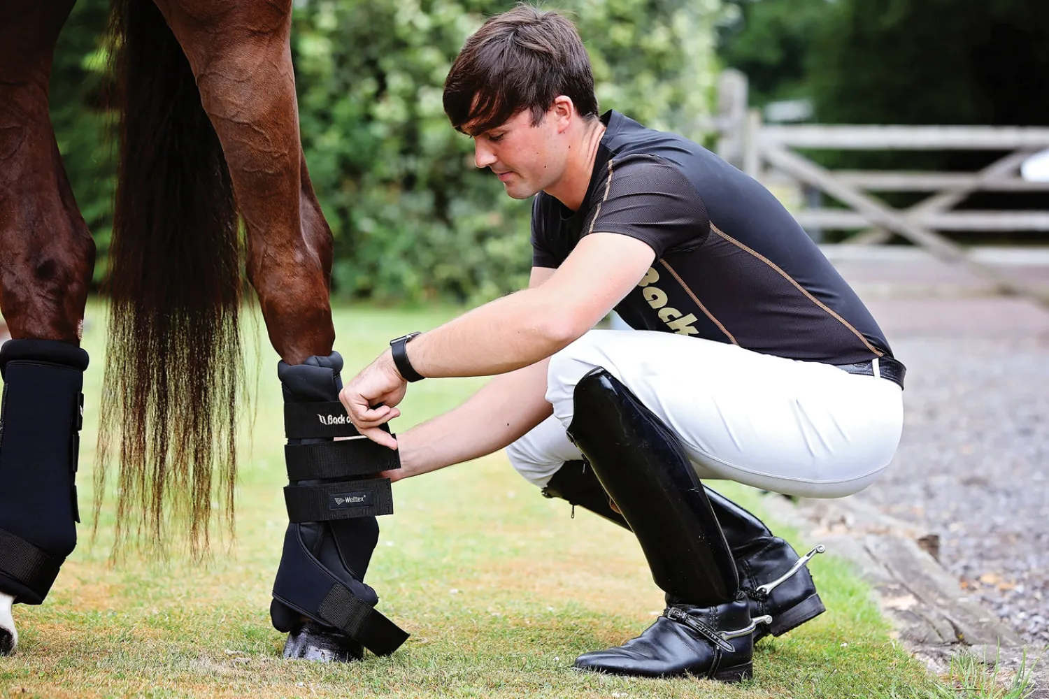 Back on Track® Royal Quick Wraps with Welltex® technology are all-in-one standing bandages that may help decrease swelling and keep your horse’s legs cool and tight. State-of-the-art Welltex material with embedded ceramic particles uses the horse’s own body energy to create a soothing far infrared effect, allowing for increased blood circulation and relaxed muscles, tendons, joints and ligaments.