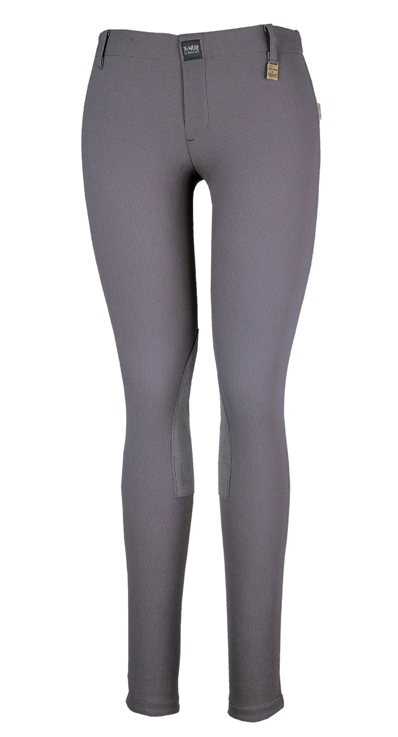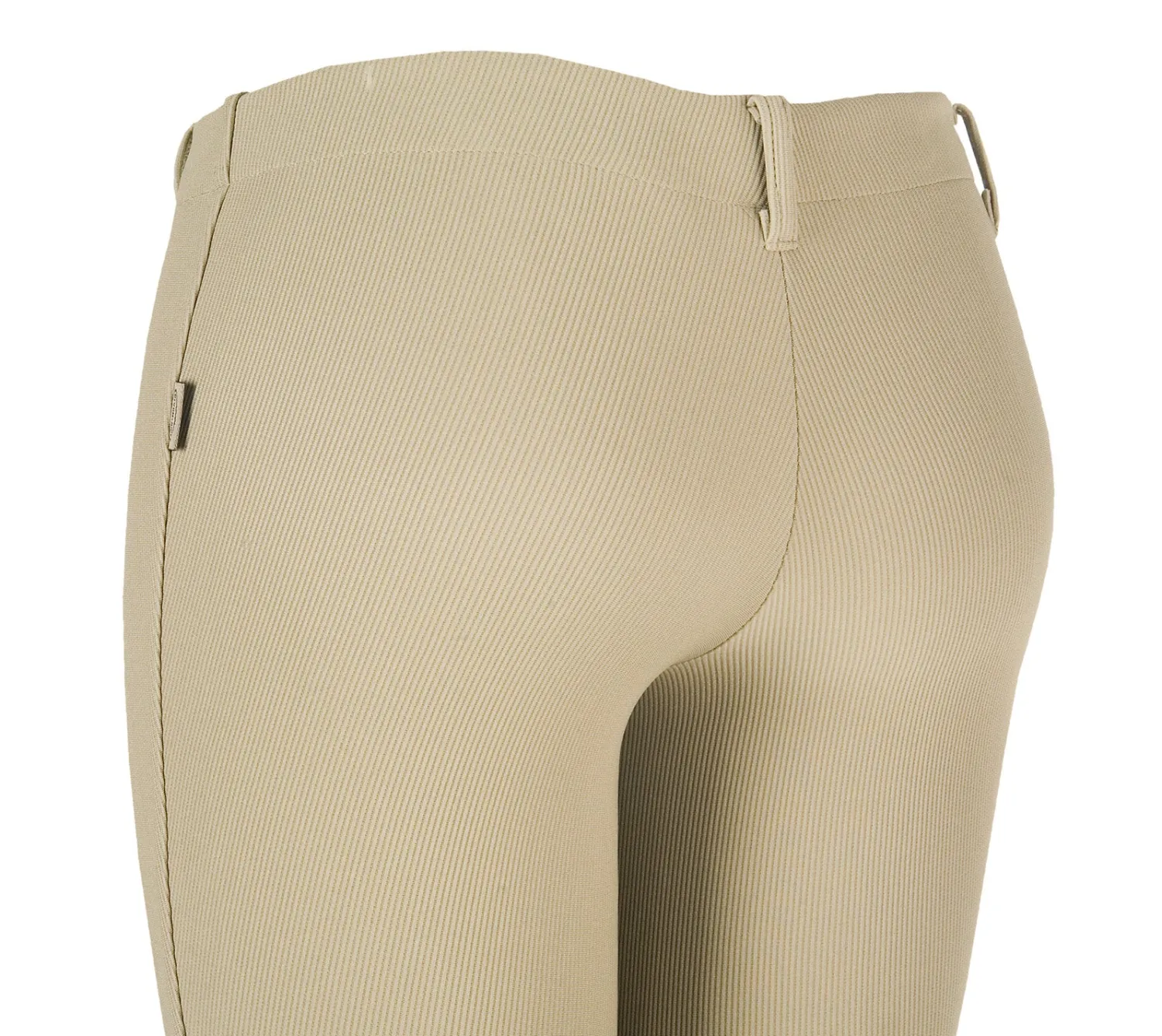 The Devon-Aire® All-Pro Hipster Breech is comfortable, soft and flattering. Made with the latest in fabric technology, the German style micro-ribbed fabric offers maximum stretch and recovery. Dev-Tek® moisture management keeps you dry and comfortable. Sewn with no uncomfortable inside leg seams, this low-rise, pull-on breech is styled with a faux fly, gripper elastic ankles and Clarino™ knee patches. Reinforced seams add durability.