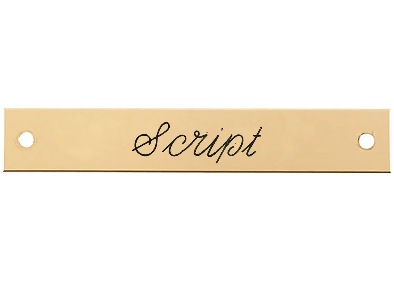 Our Beveled Edge Halter Nameplate identifies your horse’s halter in elegant style. The plate will be engraved in the USA in your choice Block, Old English, Roman or Script letters. It can hold up to two lines of text, such as your horse’s name and your name. Predrilled 5/32″ holes fit rivets for attachment to a leather halter. Standard rivets are included; longer rivets for attachment to thicker, padded halters are available by request. Choose Brass or German Silver. Usually ships in 2-4 business days. Personalized items are not returnable.
