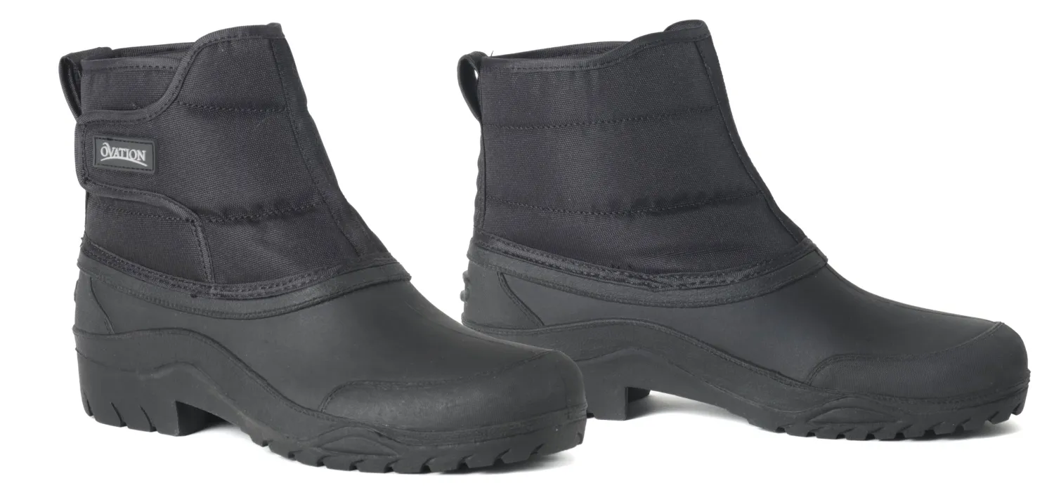The Ovation® Blizzard Paddock Boot is made with a water-resistant PVC upper and a thermoplastic rubber (TPR) foot with a rider’s outsole for riding stability in the irons. The hook-and-loop adjustable side closure ensures a secure fit. Removable, breathable poly/microfiber jersey inner sock liner keeps foot dry and comfortable. Waterproof to textile upper.