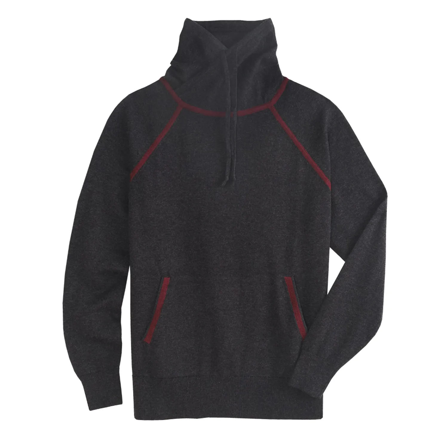 Cozy and smart Charlize Funnel Neck Sweater is crafted from extra-fine natural fibers in a soft, merino wool blend. The comfortable, easy-care material naturally wicks moisture, offers stretch and allows airflow. Cut with a relaxed fit, sewn with contrast seams and styled with a crossover funnel neck complete with drawstrings.