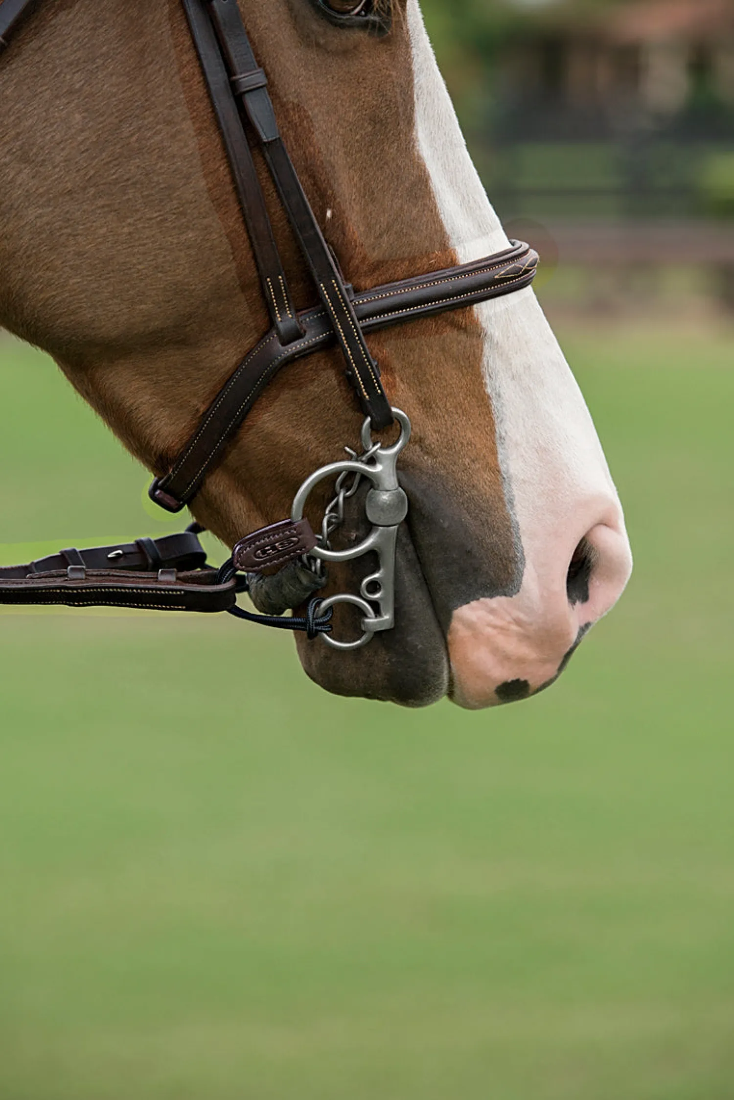 An innovative and easy-to-use converter strap, the Herm Sprenger®Pelham Converter combines the use of nautical grade nylon rope and leather. The rope loops securely around the bottom ring of the Pelham while the leather tab with stainless steel hook stud closure attaches to the middle ring. Leather tab is embossed with the HS® logo. Pair.