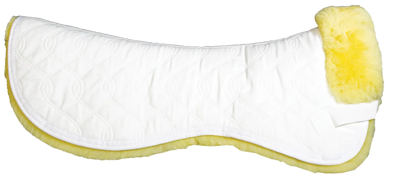 The Christ HorseDream Half Pad is a superior quality half pad with a high-withers cut, quilted cotton top and a genuine lambskin lining. The therapeutic importance of lambskin for the horse’s back is remarkable. It allows a saddle to be firmly fixed and shaped to the back and helps promote circulation, temperature balancing and saddle pressure. Naturally moisture-wicking, it promotes the horse’s comfort and aids in preventing back soreness.