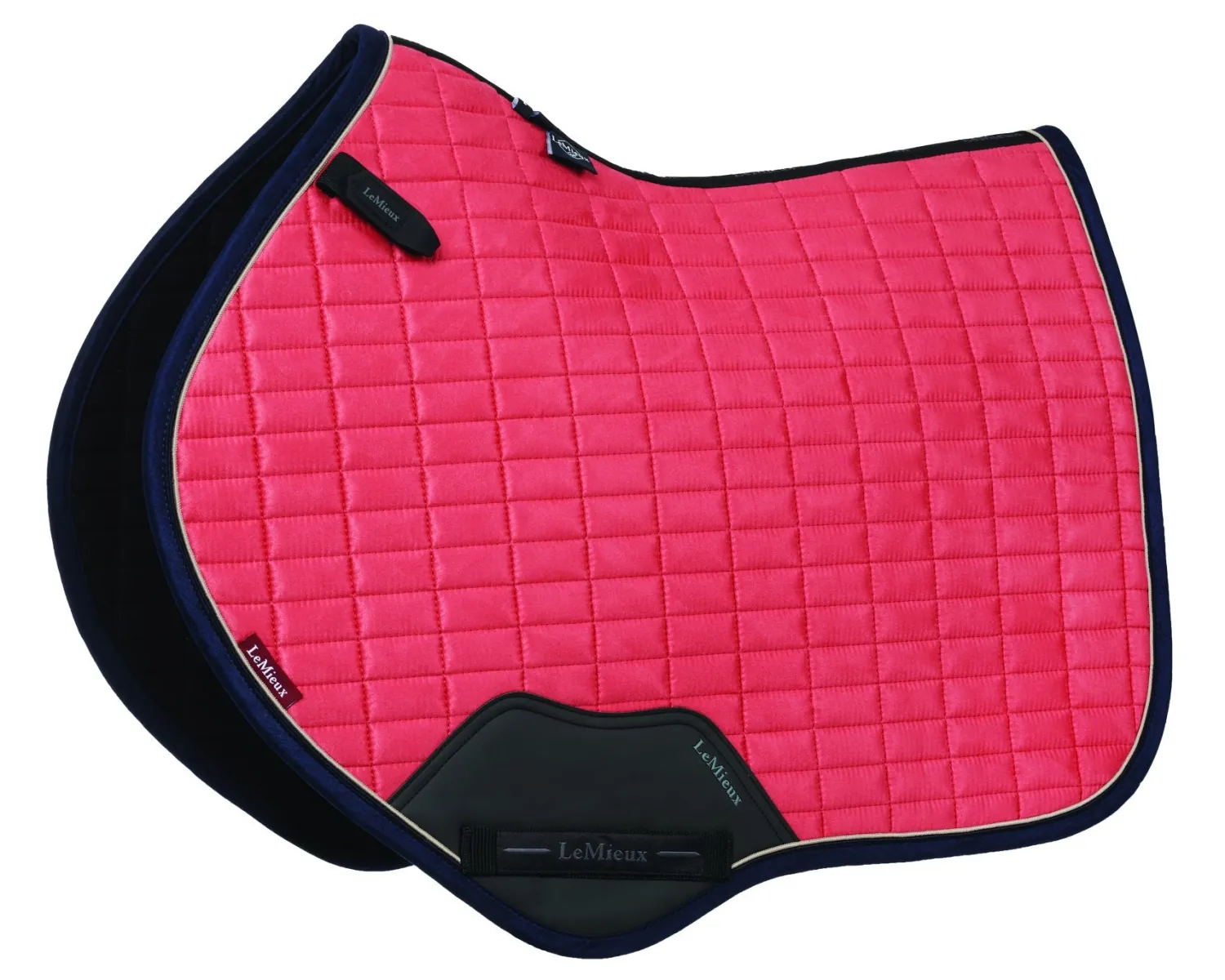 The LeMieux® Suede Close Contact Saddle Pad is designed to fit forward-cut jumping saddles. An iconic jumping pad with its high wither cut and swept back profile, the suede saddle pads offer practicality and comfort under the saddle. The luxurious yet easy-care suede-effect upper is perfect for everyday occasions. It is finished with smart LeMieux-branded spine tape, while contoured friction-free binding prevents misshaping. Signature breathable natural bamboo blend lining absorbs and controls sweat under the saddle and is naturally antistatic, antimicrobial, and quick-drying. It’s also beautifully comfortable and secure, minimizing friction even on sensitive-skinned horses. A durable girth protection area ensures lasting quality. Girth keepers incorporate inner looped channels to offer more girthing options for optimum fit. Elasticated shaped D-ring tabs allow easy, non-slip attachment to the saddle while still leaving room for extra training aids to be clipped on.