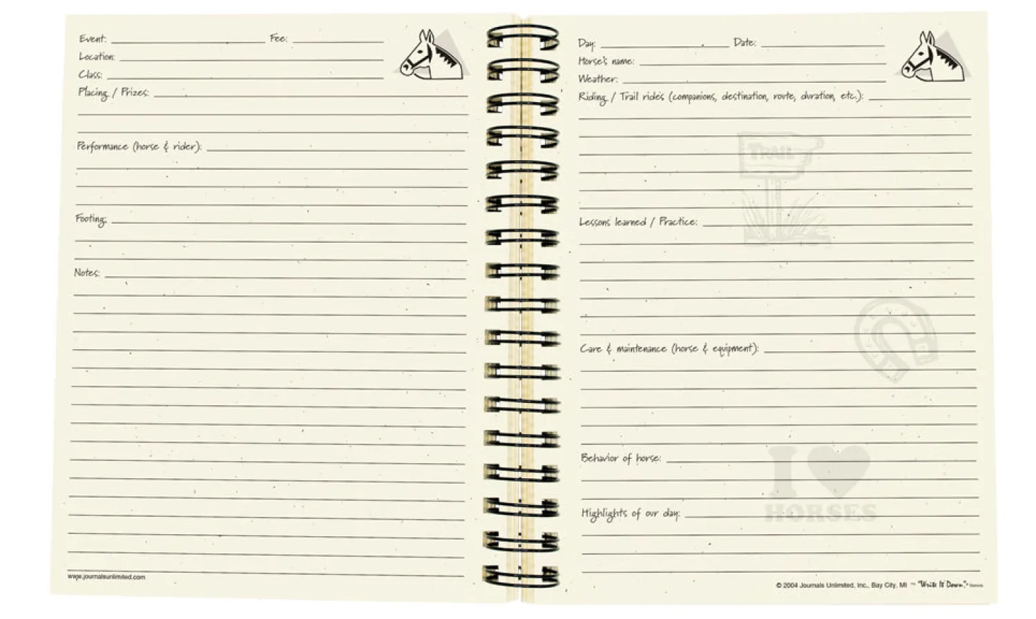 A fun and useful gift for any rider, this journal is printed in the USA on acid-free, recycled 70-pound paper using soy-based ink. It has a durable hard cover design and 200 pages.