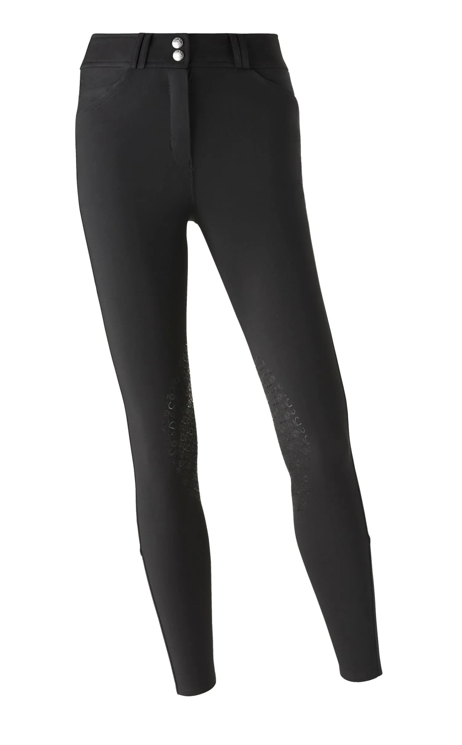 - Silicone grip knee patches in an equestrian-inspired print.