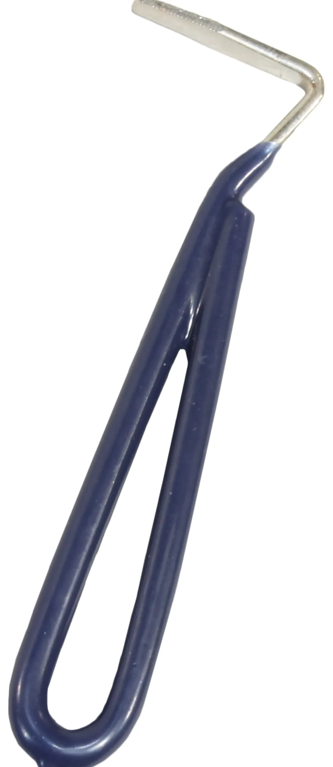 The Covered Hoof Pick is a metal hoof pick with a plastic-coated handle. Assorted colors.