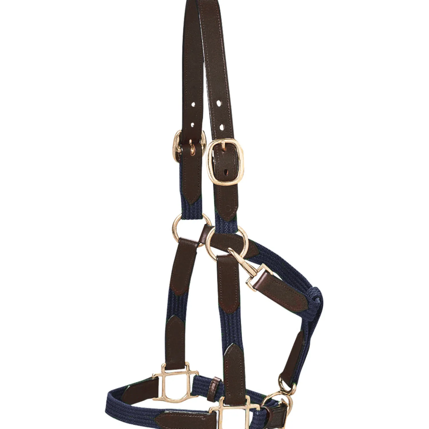The Suffolk™ Web Halter is made of strong and attractive cotton webbing with leather accents and solid brass fittings. It has an adjustable chin, snap at throat and double-buckle crown.