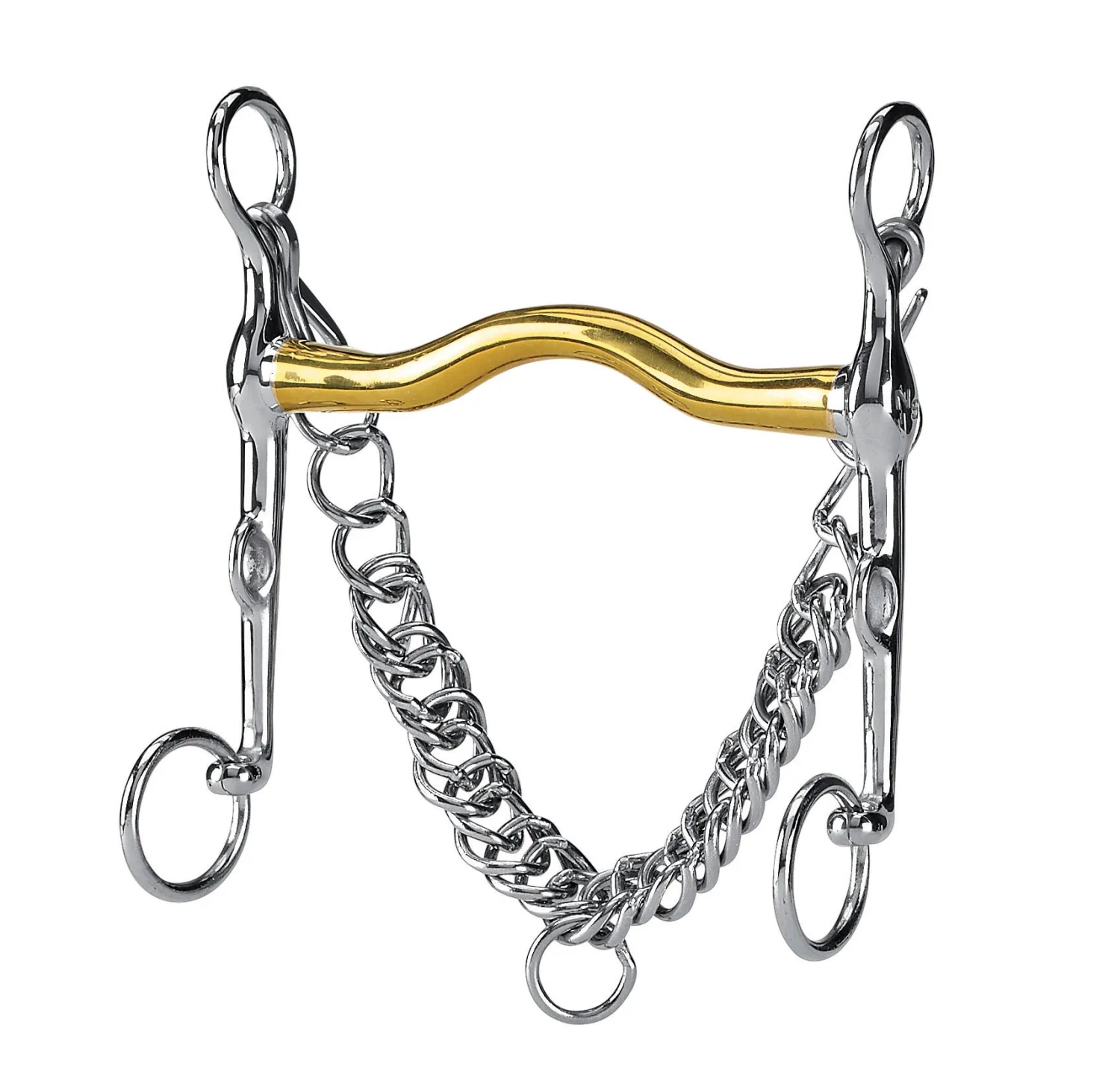At 14mm in diameter and with this design, use of a fatter bradoon with this weymouth is possible, which may help a horse that is tentative in the contact. Stainless steel shanks are 7cm long. Curb chain is included.