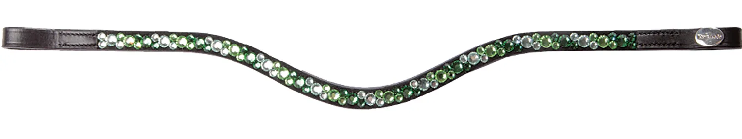 Kavalkade Sparkle Browband in black leather is shaped for style and fit. Intriguing, alternating diagonal rows of white, gray and black small and large crystals lend sparkle.