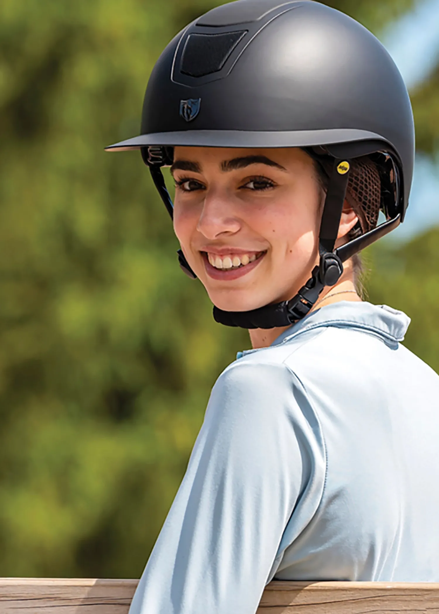 The Tipperary™ Devon Wide Brim Helmet with MIPS® is an elegant choice appropriate for the show ring. The wide brim offers protection from the sun while maintaining classic lines.