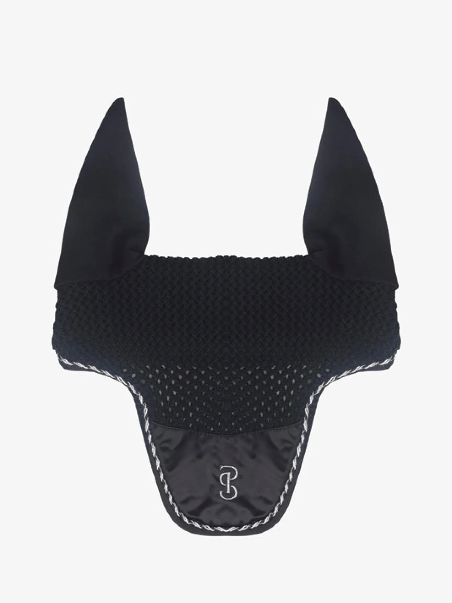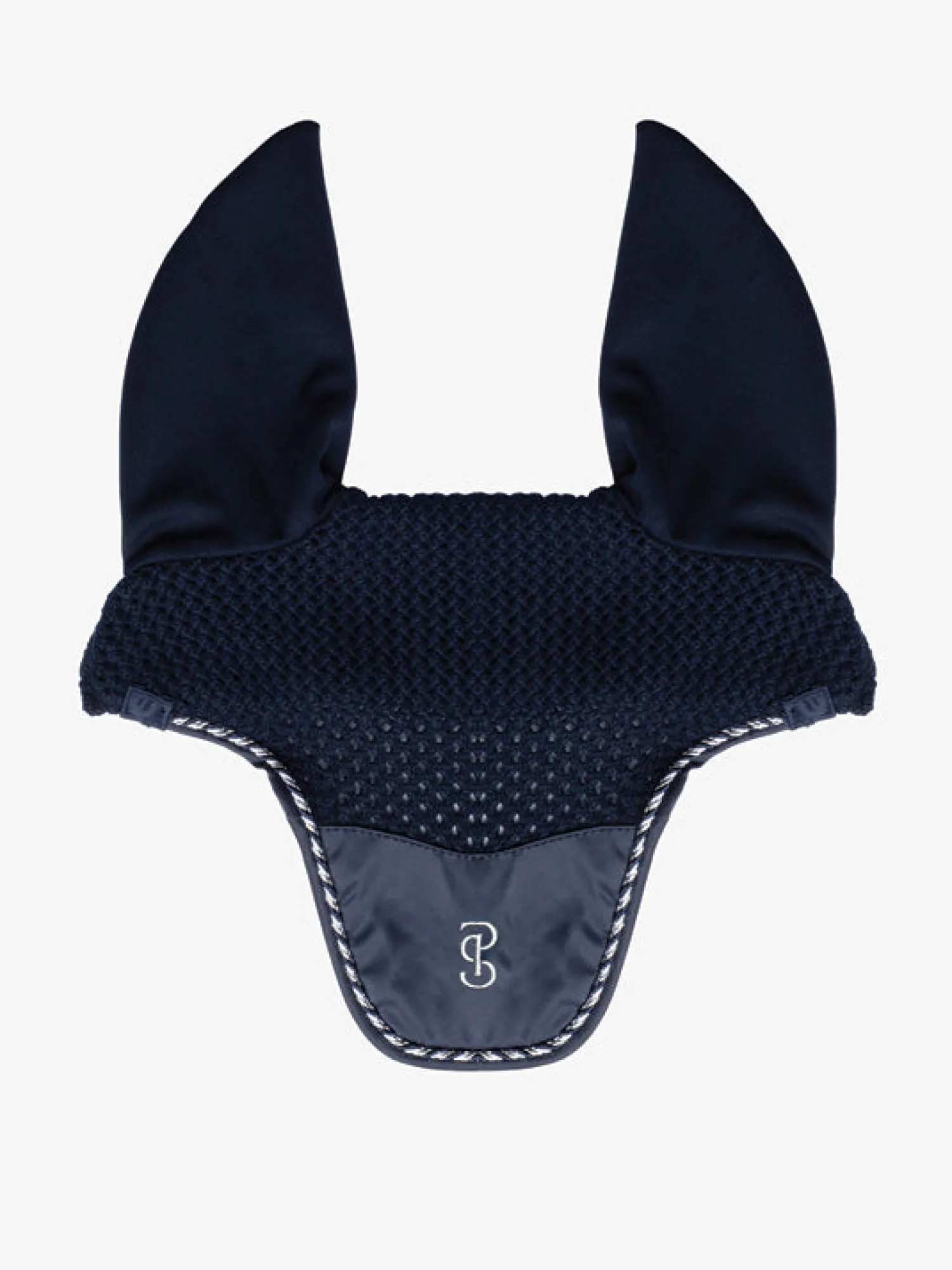 The PS of Sweden Signature Ear Bonnet has a shapely fit and elasticized ear covers. This fly bonnet is made from stretchy, breathable, antibacterial quick-dry material with a hand-knitted crochet body. Designed to comfort sensitive horses, it features decorative details, including braided rope trim, a fabric front embroidered with logo and soft fabric trim.
