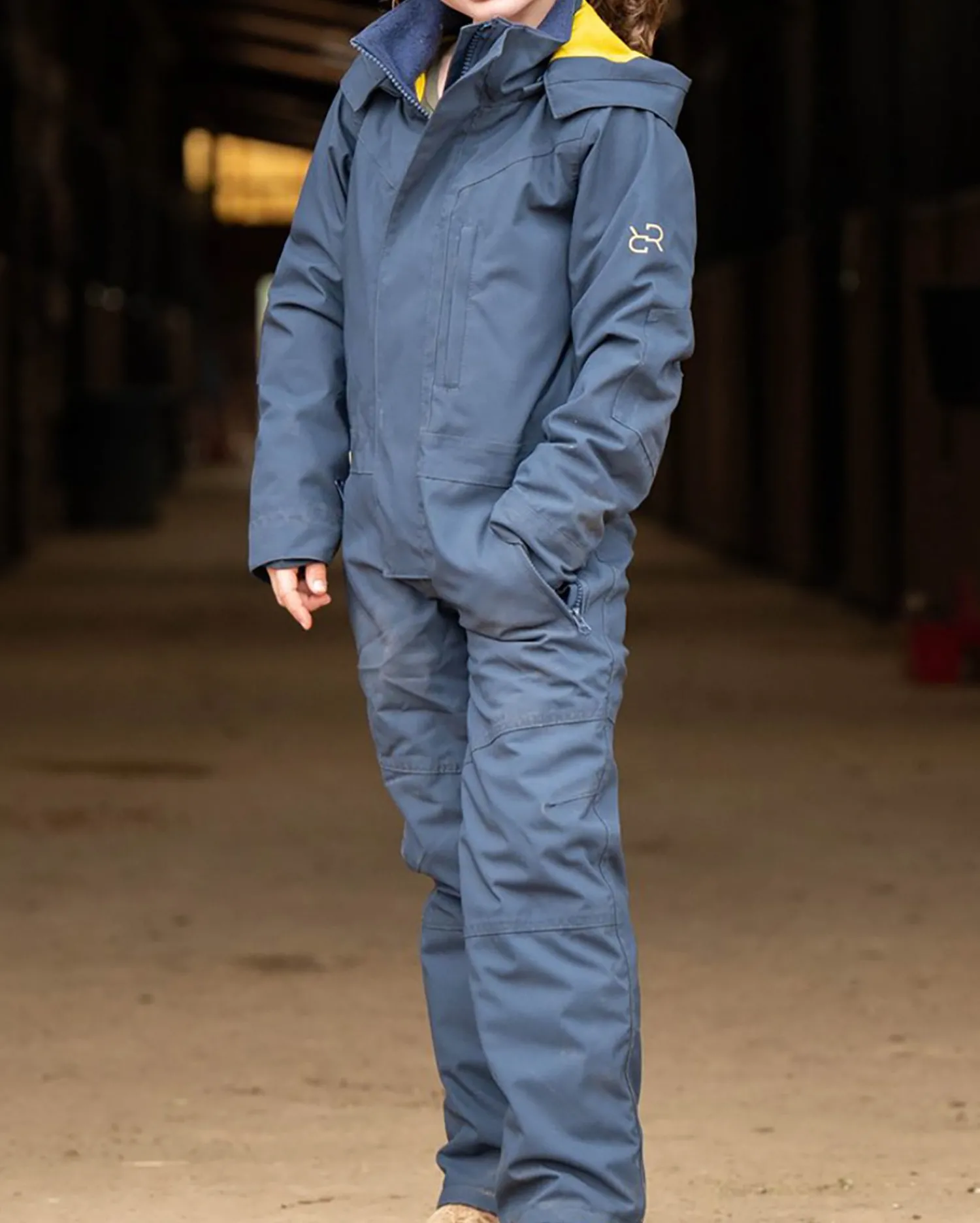The Redingote Kids’ Winter Insulated Jumpsuit keeps young riders warm, dry, and ready for winter adventures at the barn. With cozy 60 grams insulation, a breathable and waterproof shell, fully taped seams, easy-on leg zips, and plenty of pockets for pony treats, it’s made for everything from grooming sessions to snowy rides. Built tough for the barn. Oversized zip-off hood. Helmet visor flips backward and secures with a magnet to convert to a standard sized hood. Storm flap secured by magnets blocks wind and water. Sized to layer over a standard riding outfit.