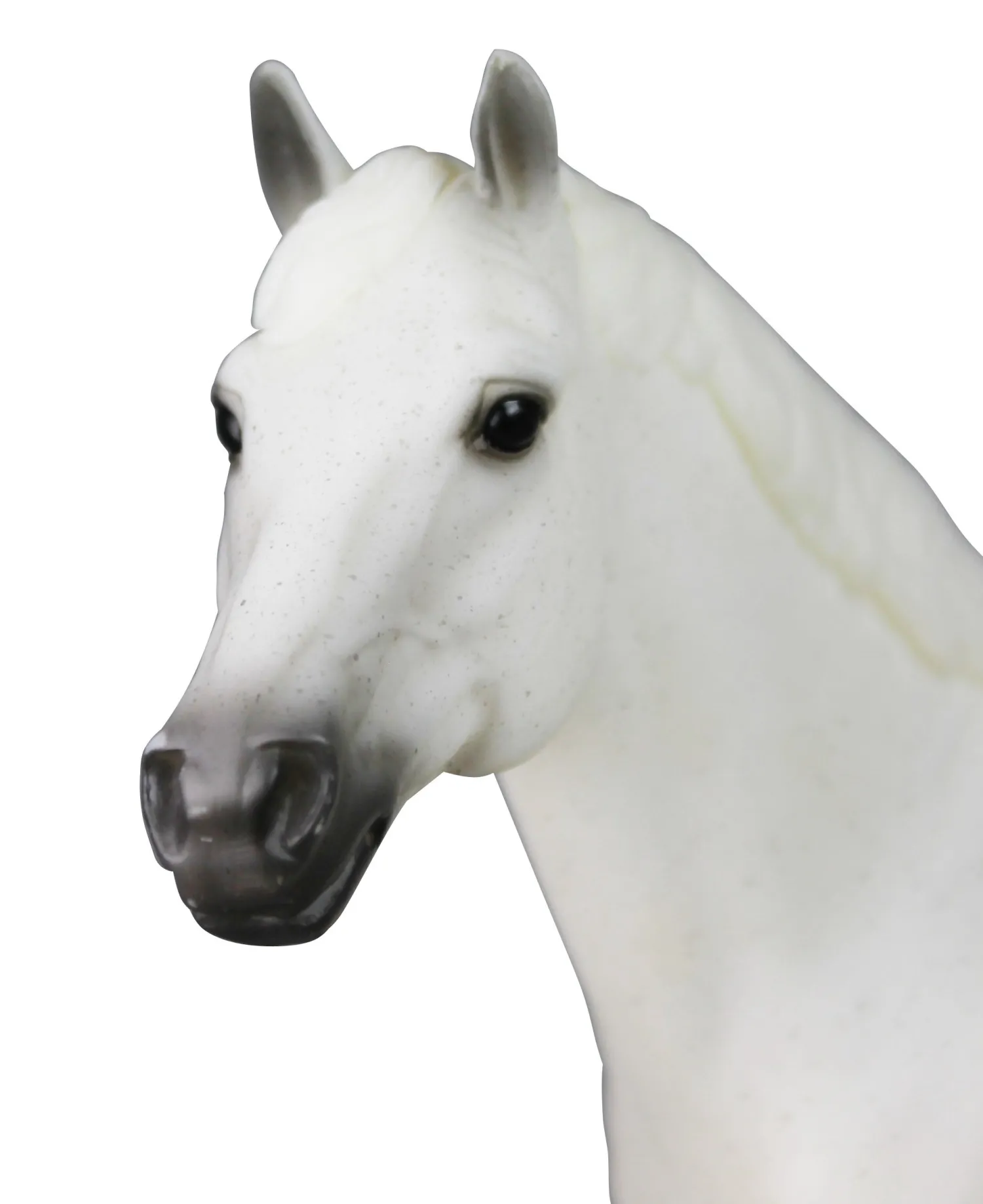 A big grey horse with an even bigger heart, Snowman rose from obscurity to become one of show jumping’s most beloved heroes. Breyer® pays tribute to Snowman with this beautiful, Traditional® size model horse. Purchased for just $80 in 1956 by Harry deLeyer, the child-friendly lesson horse kept leaping over substantial paddock fences, revealing his broader talent.