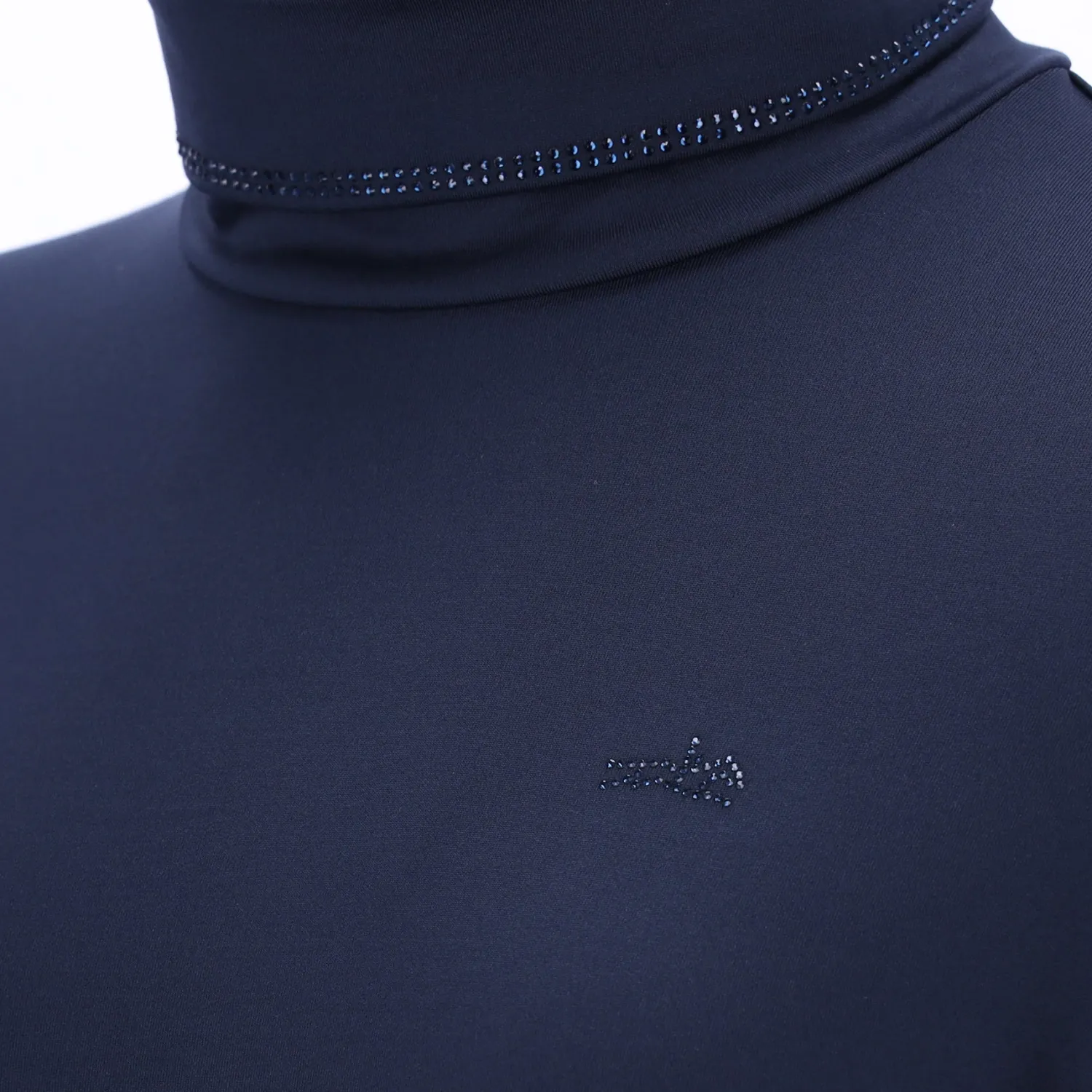 In an elegant turtleneck style, the Schockemöhle SpAnne Long-Sleeve Shirt is ready to ride. Adorned with eye-catching rhinestones. Tonal rhinestone applications twinkle on the collar. Rhinestone logo motif on chest, sleeves and back.