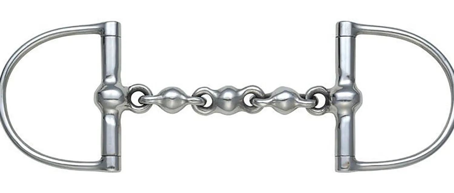 Shires Hunter Dee Bit has cheeks that help with steering. The Waterford mouthpiece is made of many different links to make it harder for the horse to pull or lean against it.