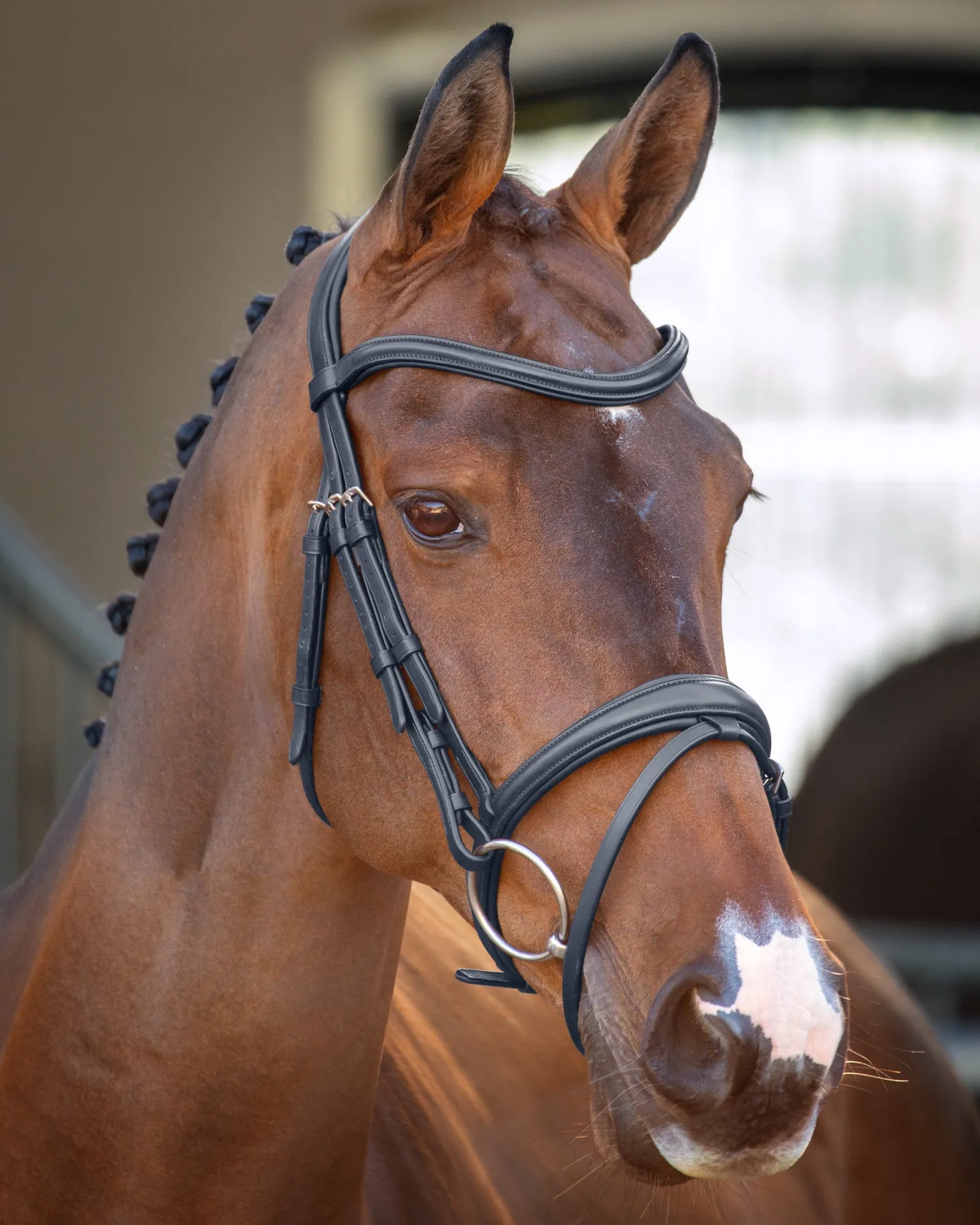 The Pro Series Luxe Velociti Lusso Padded Raised Flash Bridle is smart and refined in supple, vegetable-tanned European leather. Raised detail at the brow and noseband give it elegance, and soft, cushioned leather linings at the nose, brow and crown ensure a comfortable fit.