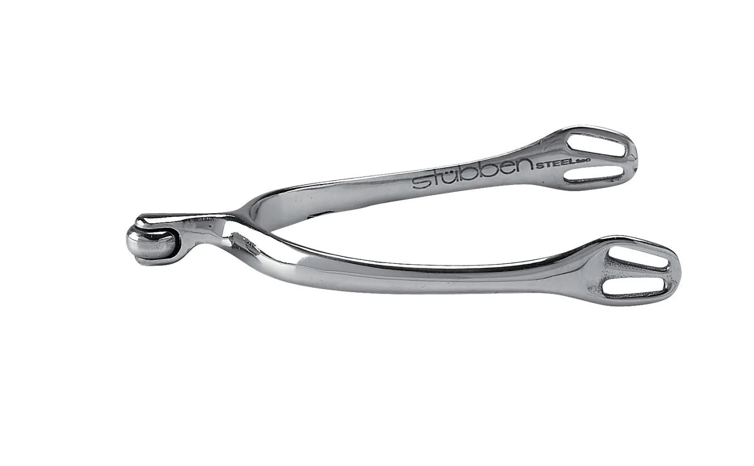 Stübben Dynamic Soft Touch Spurs have a V-shaped heel that fits snugly and offset spur strap loops to help alleviate ankle bone pressure. The roller ball design is perfect for sensitive horses.