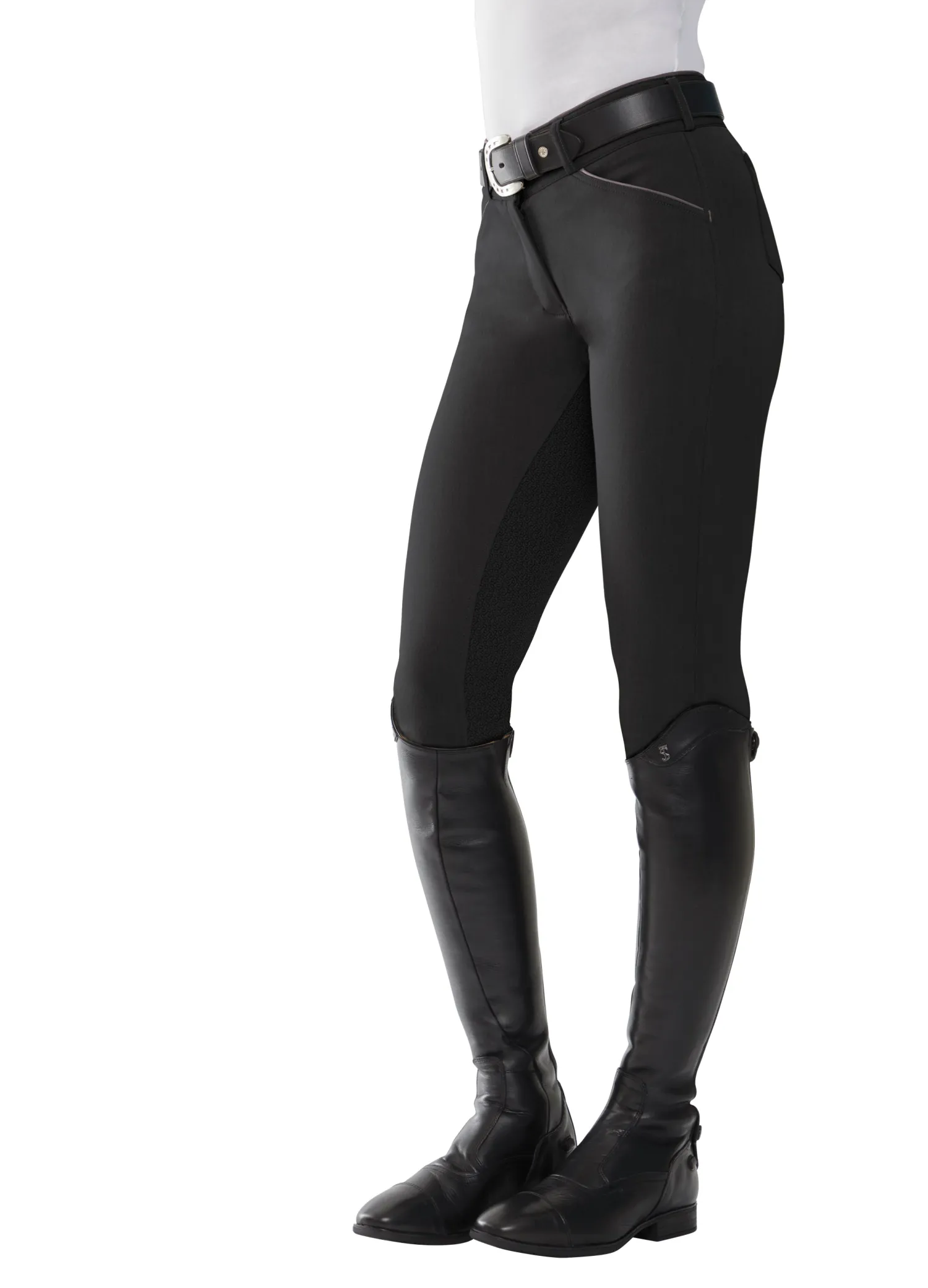 This breech also boasts the mid-rise EquiTrue Rise™, a unique cut that allows it to maintain a flattering, secure fit, staying true to your form as you ride or bend to groom. No matter how you move in the saddle or out, a soft, covered waistband and seat won’t slide, slip, pinch or bind—you’re free to think about more important things than yanking and tugging your breech for modesty.