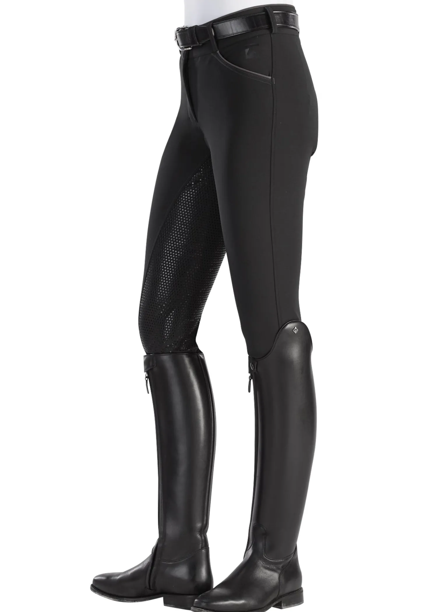 This Riding Sport™ Ladies’ Synchrony Knee-Patch Breech is a mid-rise fit that provides a curvier fit with extra room in the hip and thigh. Durable and the perfect weight. Breathable with stretch for freedom of movement. Contrast piping at the slash pocket, no back pockets, euro seat. Silicone full seat.