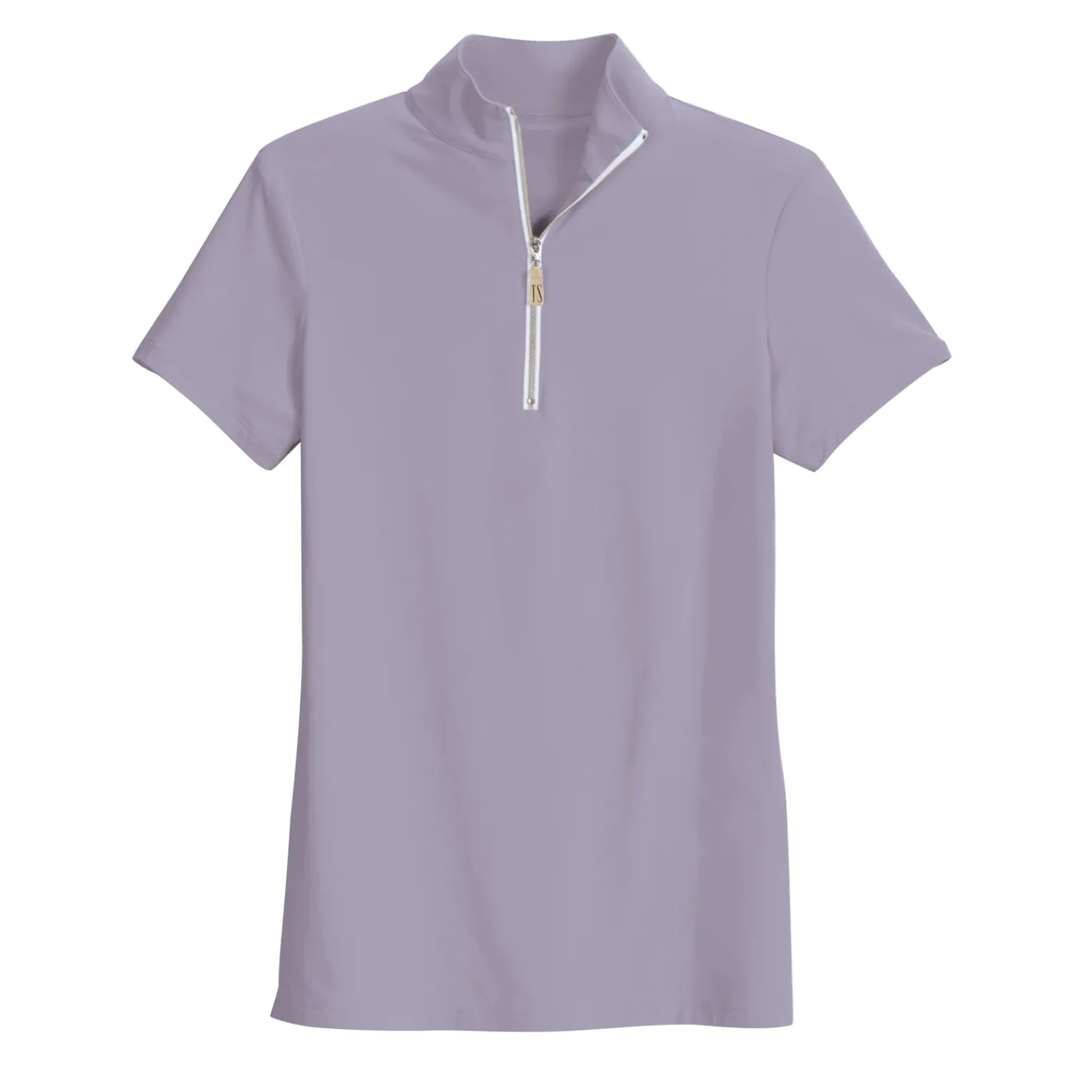 This semi-fitted riding top is lightweight, stretchy and moisture-wicking. A slightly brushed inner surface makes it feel luxurious on your skin. Styled for a polished look with a color-coordinated quarter zipper and stand collar.