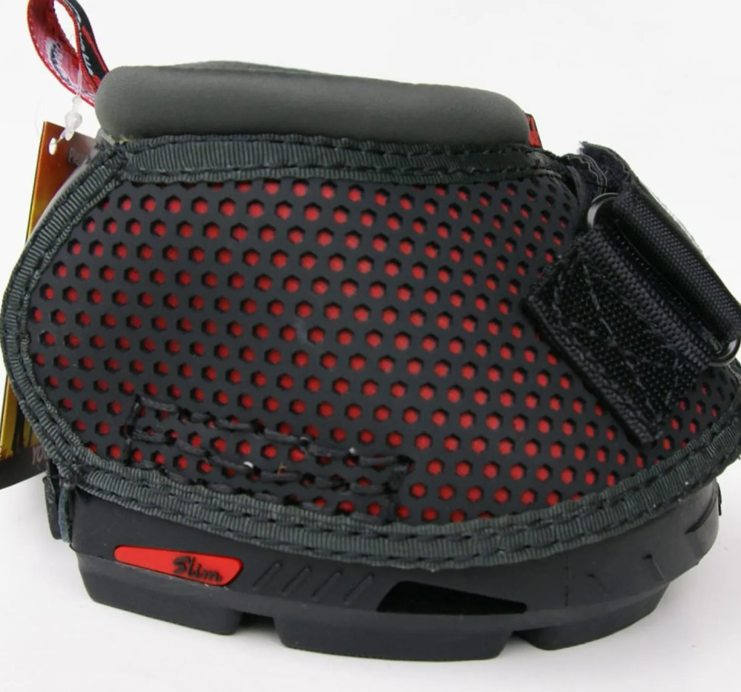 The outside tread pattern supports the hoof wall, and built-in sole relief with a raised inner rim takes pressure off the sole, bars and frog. A molded TPU back flap protects the bulbs. The flexible and tough Pro Mesh upper is breathable, tear-proof and abrasion-resistant, and it contains no glues or adhesives. Its honeycomb design optimizes strength, minimizes weight and allows drainage. Sand and dirt will not pass through or get trapped in the hexagonal holes.