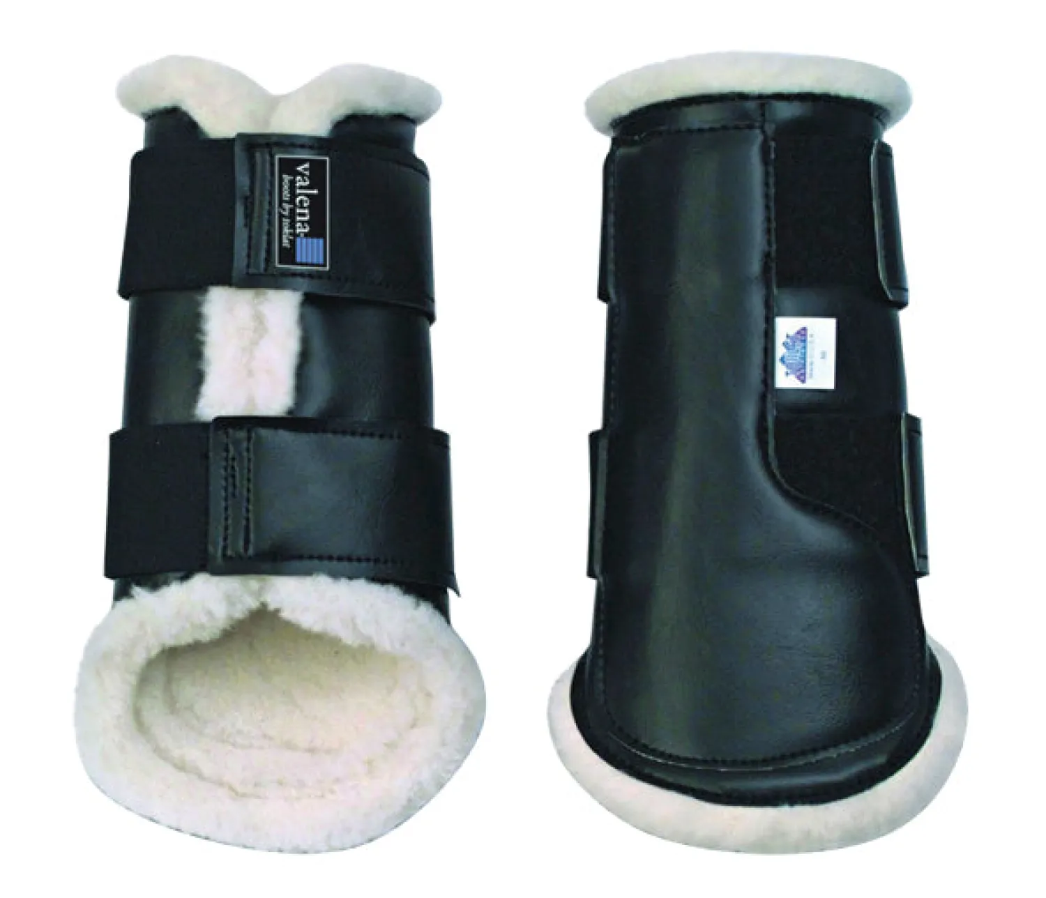 The Valena Front Boot has a WoolBack lining for extra protection, comfort and moisture-wicking. The exterior is a durable, heavy-duty vinyl with wide elastic and VELCRO® brand straps for quick and secure fastening. WoolBack lining is a dense pile wool fabric that protects against concussion while wicking moisture. Fleece stays lofty. Easy care. Pair.