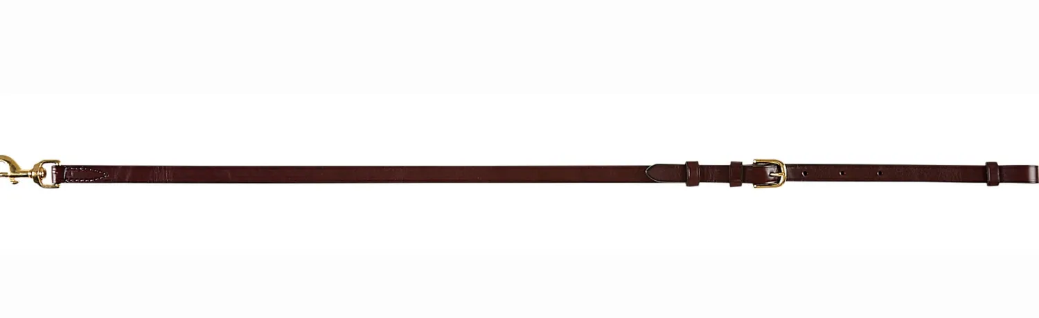 Made in America, Tory Leather Side Reins adjust from 40″to 44″. These all-leather side reins are 3/4″ wide with solid brass buckles and trigger snaps ends.