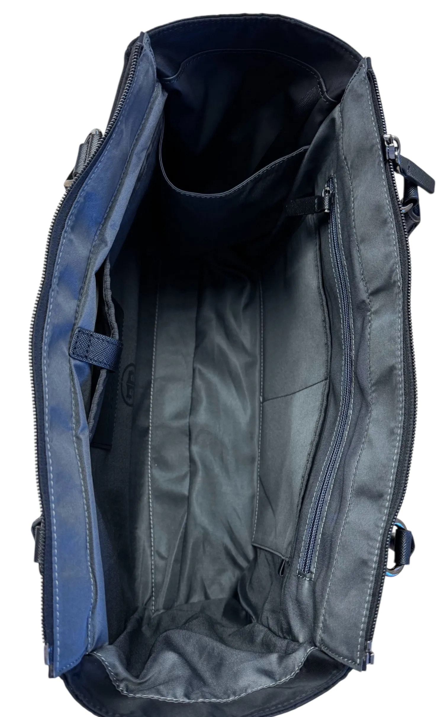 Carry your equestrian style to your work spaces and beyond with the Tucker Tweed Equestrian™ Medium Office Tote. This nylon/leather upscale tote is a pocket powerhouse! Interior pockets for laptop, drink, phone, cords and more. Exterior completed with gunmetal hardware, matching zipper pockets both front/back and trolley sleeve. Includes adjustable shoulder strap. Fits 13″ PC/14″ MacBook laptop.