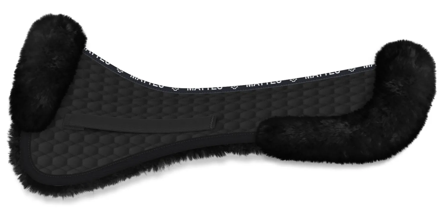 PRODUCT DESCRIPTION: E.A. Mattes Platinum EWWA Sheepskin Dressage Half Pad with Rear Trim
