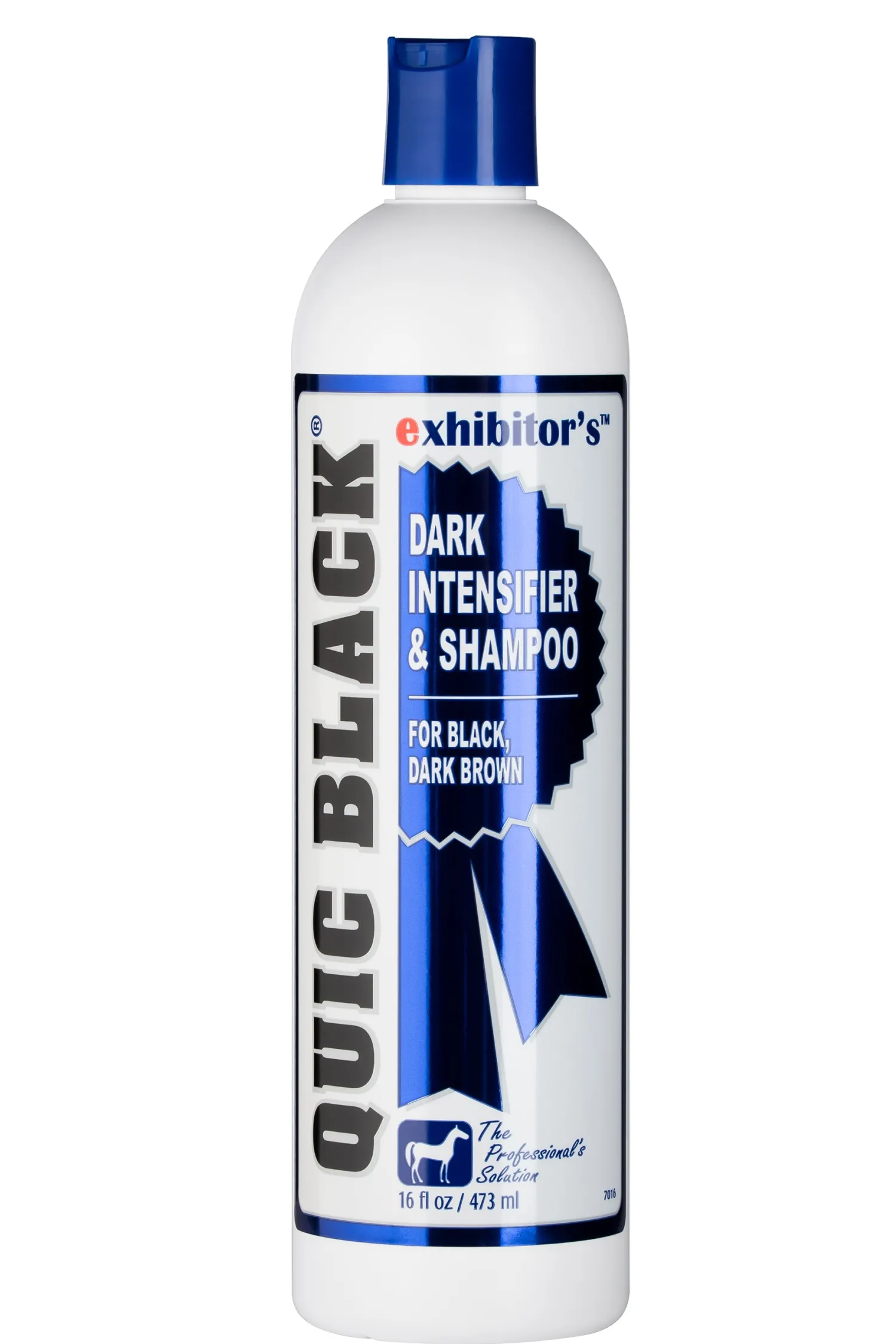 Exhibitor’s™ Quic Black® intensifies black and reduces reds in black coats. Imparts saturated, rich color and highlights. Restores color to clipped or sunburned coats. Removes scurf with deep-cleaning, easy-rinse formula. Contains no harsh chemicals and has a neutral pH. 14 oz.