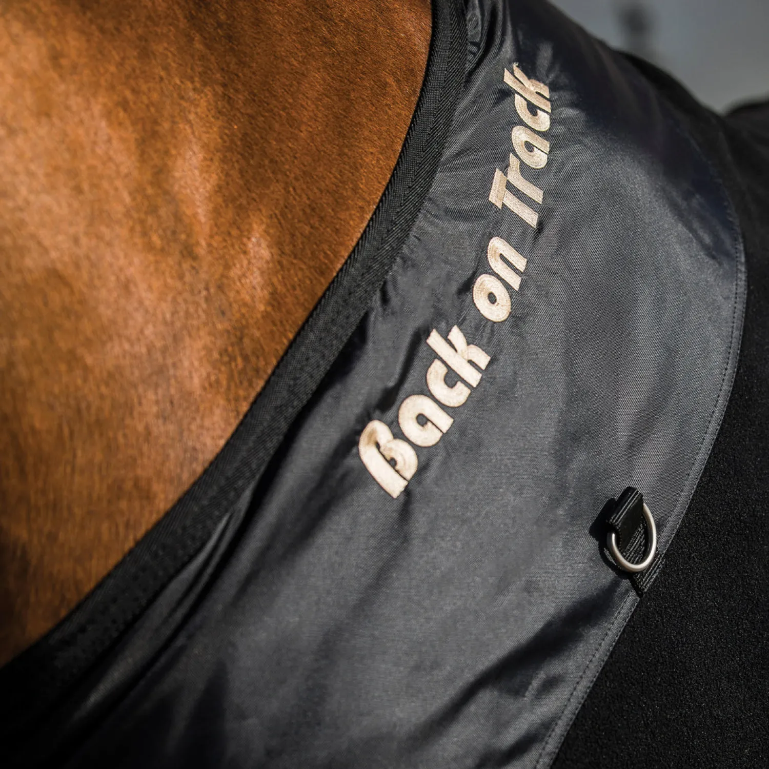 The Back on Track® Supreme Fleece Blanket has a stylish design with smart features. Perfect for use before and after training or competition, in the stable or during transport. Welltex® technology uses minerals to reflect body heat in the form of infrared energy, which can increase blood circulation and thus support the horse’s muscles and joints. Rounded around the neck and reinforced with polyester and teddy fleece to minimize the risk of chafing at the withers.