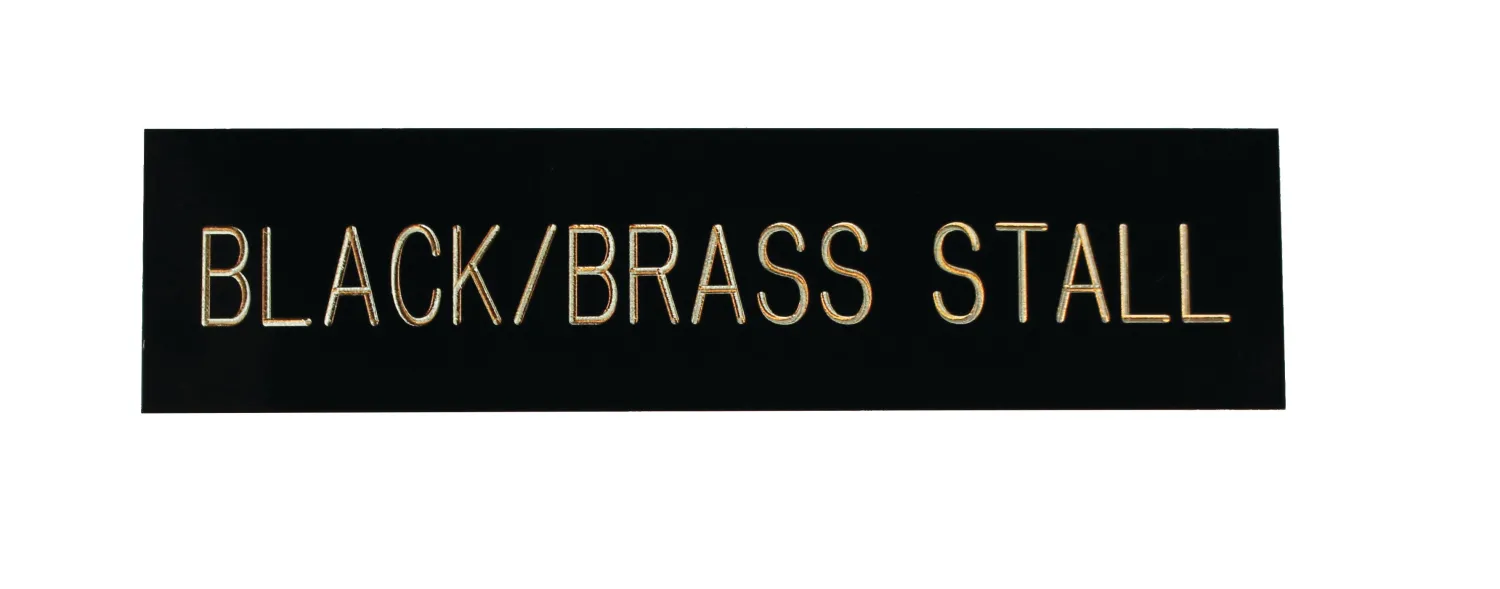 PRODUCT DESCRIPTION: Rectangular Black & Brass Stall Plate – 1 or 2 lines