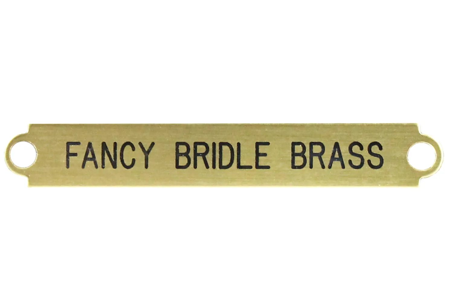 Our Fancy Bridle and Accessory Plate is an attractive way to label your horse’s bridle, leather lead or other items. The plate will be engraved in the USA in your choice Block, Old English, Roman or Script letters with your horse’s name or your name. Predrilled 5/32″ holes fit rivets for attachment. Two sizes of rivets are included to allow you to attach the nameplate to either a padded or flat leather bridle. Choose Brass or German Silver. Usually ships in 2-4 business days. Personalized items are not returnable.