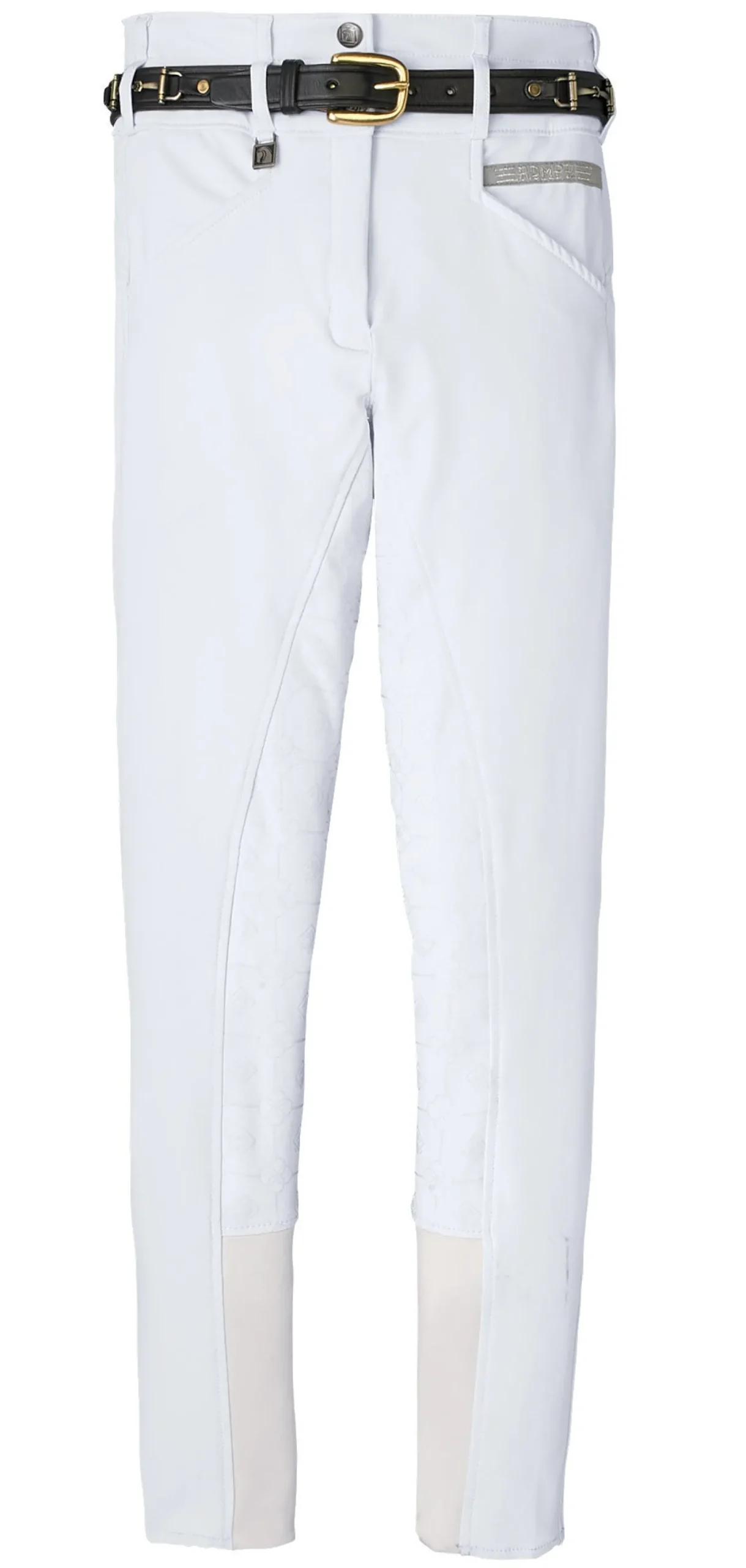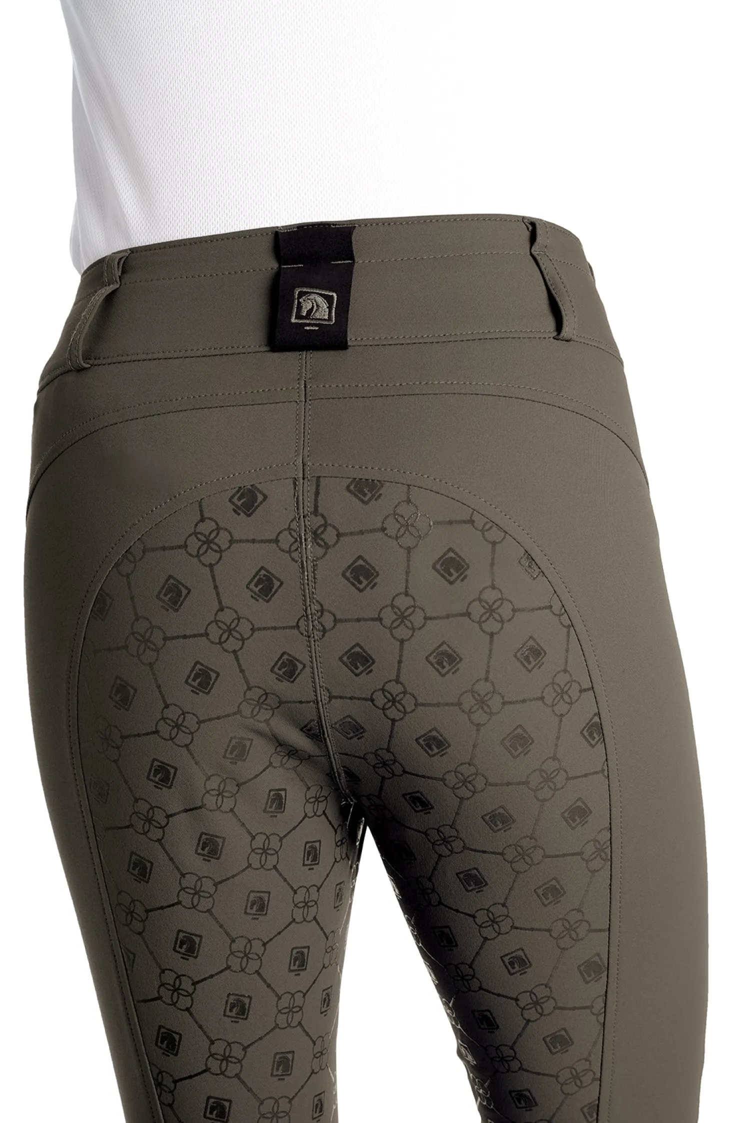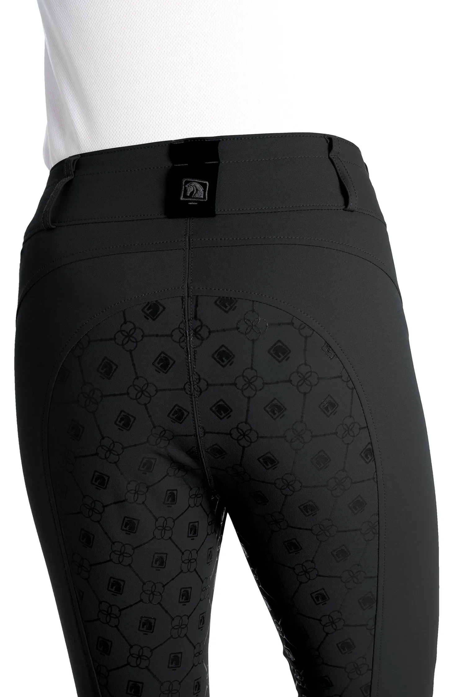 This ladies′ breech provides the high-waist fit desired by top-level riders. A silicone print on the seat provides a secure grip in the saddle without the added bulk of a full-seat layer.