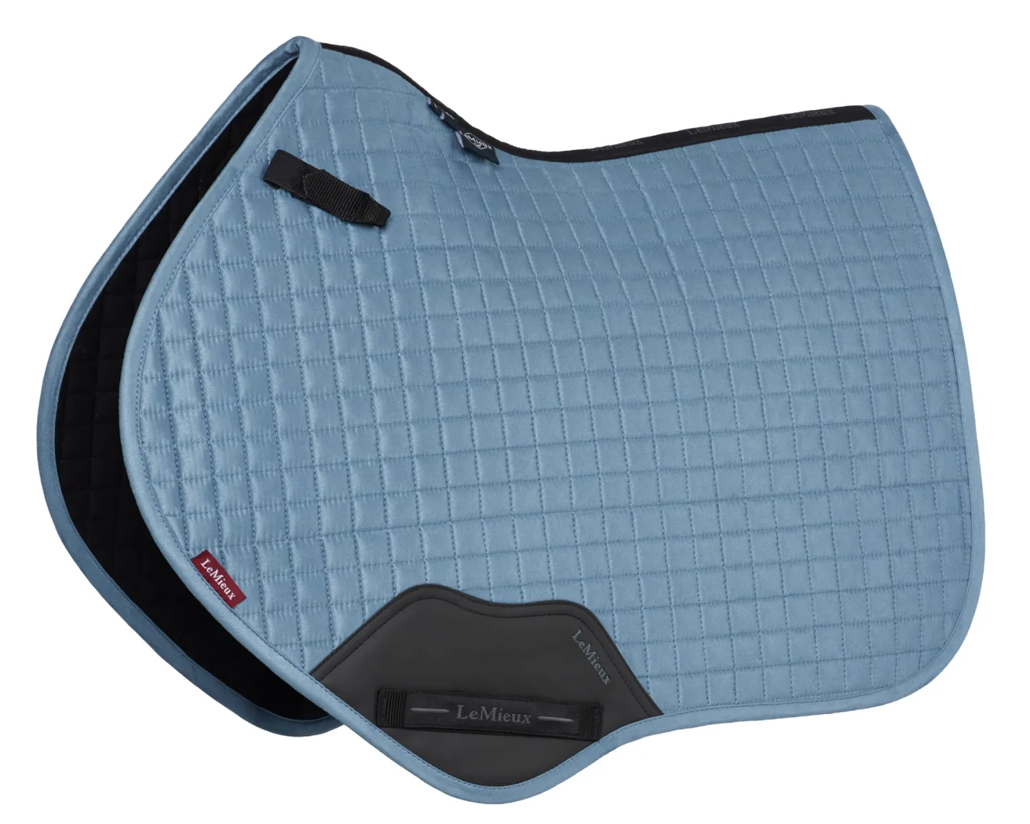 The LeMieux® Suede Close Contact Saddle Pad has a classic cube quilting pattern with piping for style and optimum cushioning. Upper soft suede-effect binding always lies flat and the naturally cooling bamboo blend lining is soft against your horse. LeMieux’s signature girth protection promotes long wear. Elasticated D-ring tabs keep pad in place and the high wither cut enhances the fit of the saddle.