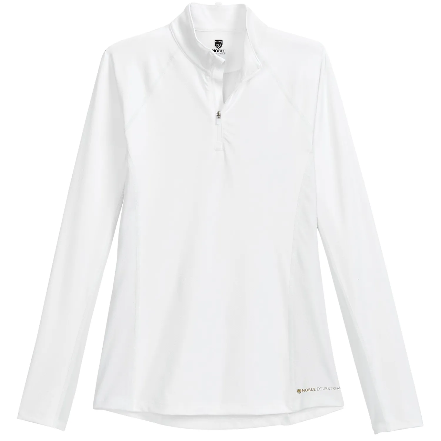 Ideal for schooling or showing, this fitted riding shirt has princess seaming to create a feminine fit. Flat seam construction and a tagless neck label provide softness. A reverse coil YKK® zipper, stock tie loop at the back neck and dropped back hem complete this versatile top.