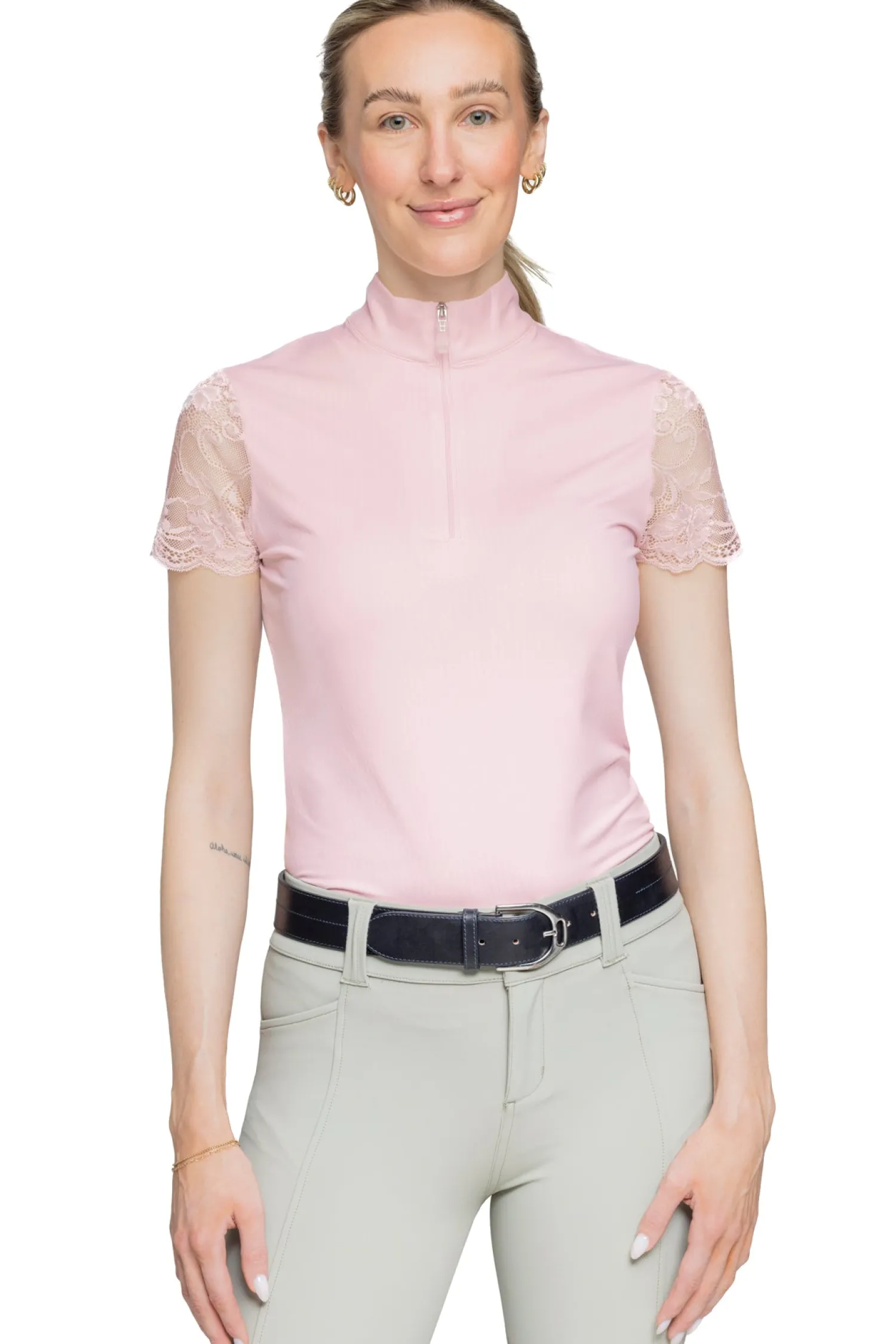 The Kastel Denmark Willow Short Sleeve Shirt pairs a solid-color bodice and feminine, contemporary stretch-lace sleeves. Soft, four-way stretch fabric in the body is rated UPF 30 and offers antibacterial odor control.
