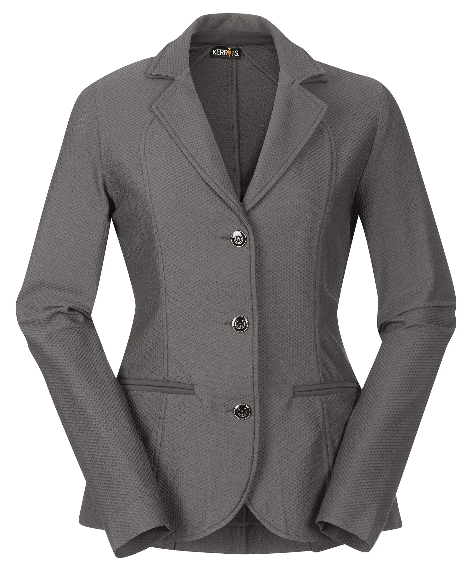 The Kerrits® Affinity Aero Show Coat merges high-tech, quick-dry fabric with elegant styling to keep competitors feeling cool and looking great. Textured, “no-see” stretch mesh fabric provides perfect coverage and the ultimate freedom of movement. It allows air to flow through its open weave, maximizing breathability and comfort.