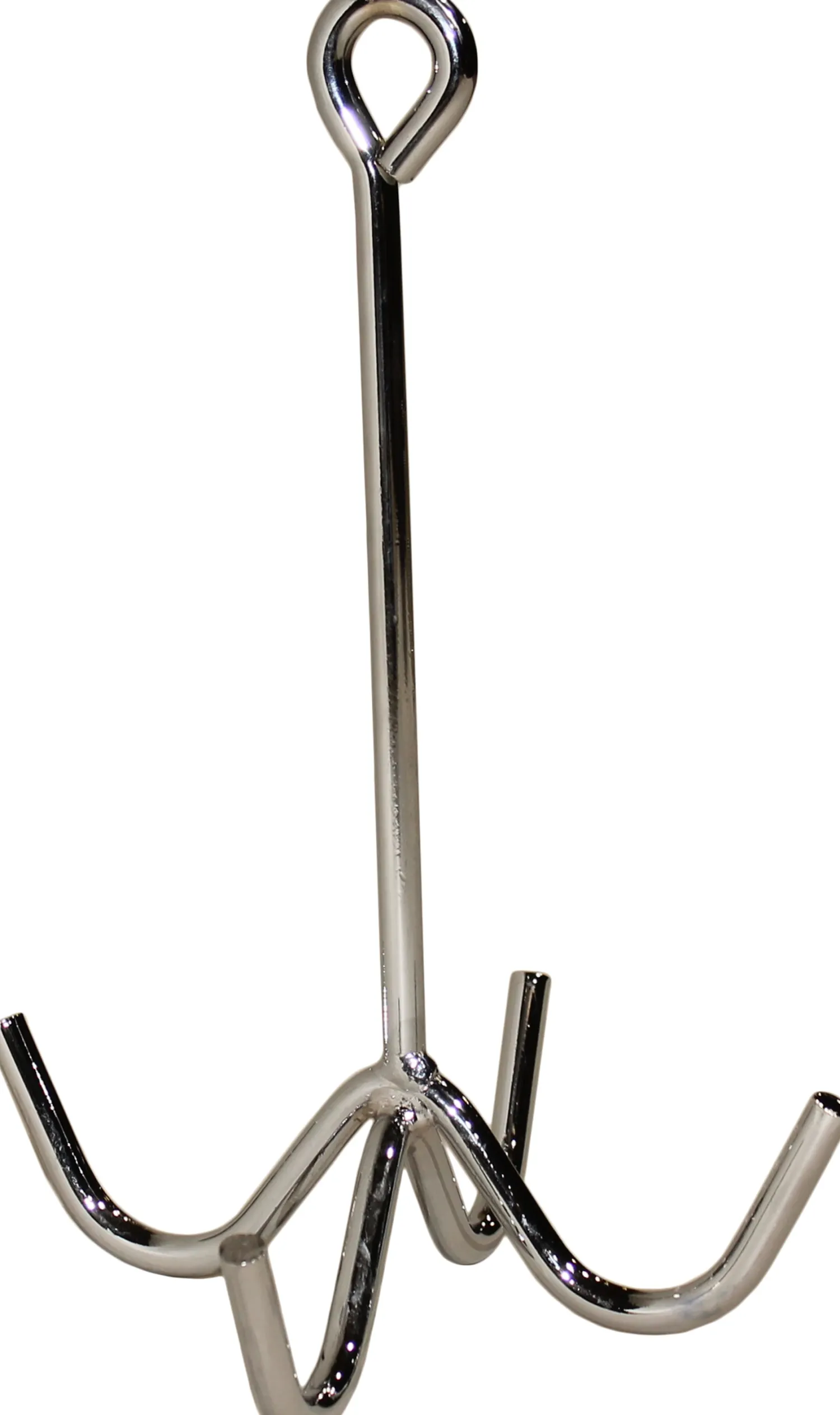 The space-saving Four-Prong Chrome Metal Tack Hook adds loads of strap good storage to any tack room and makes cleaning bridles easy.