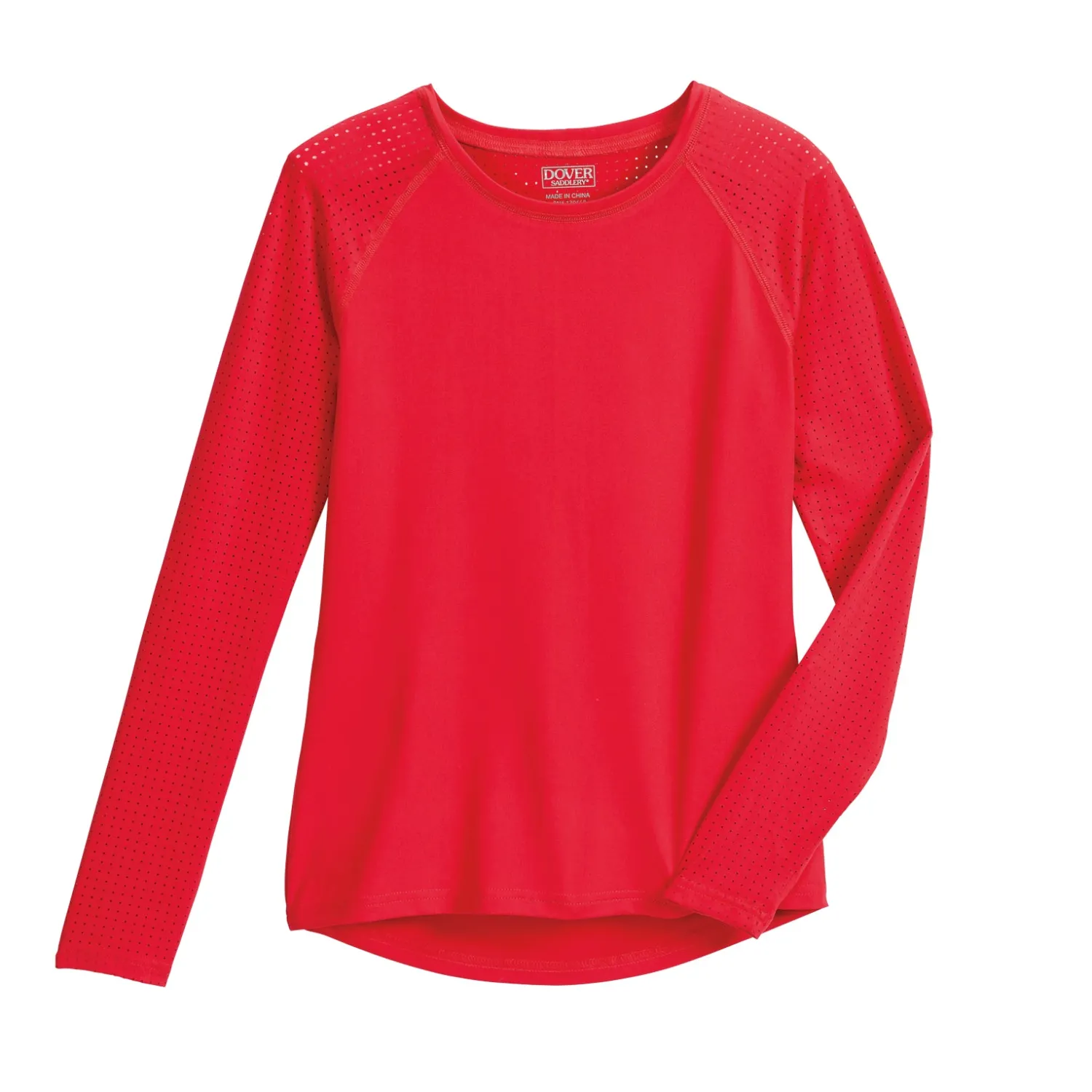 The Stride™ Girls’ Long Sleeve Tech Top offers an athletic fit in stretchy performance fabric. Technical wicking fibers work to keep skin dry, while a perforated back panel and sleeves enhance breathability in areas likely to perspire most.