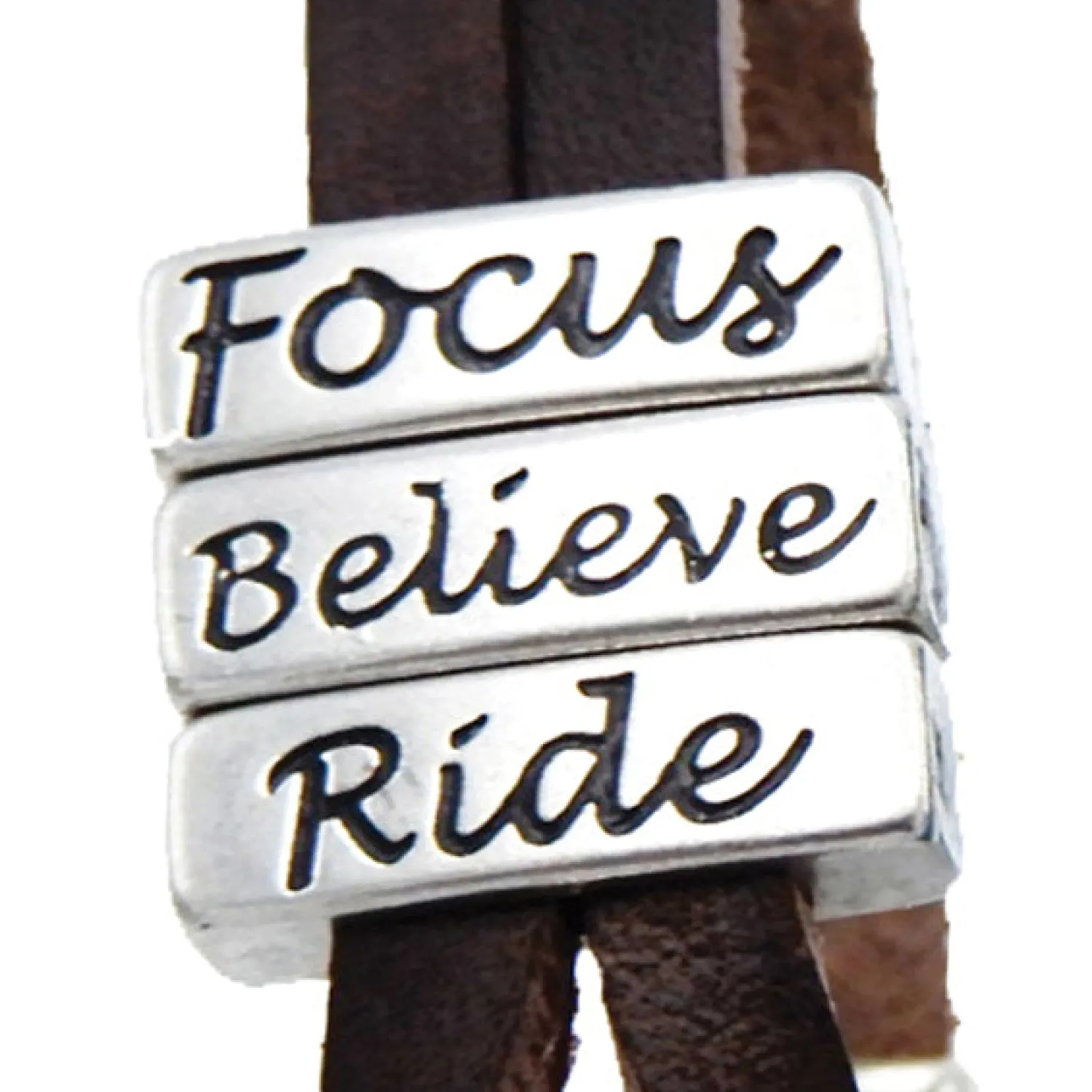 Express your passion in the Lilo Collections™ Triana Bracelet. Crafted in Spain from rich leather, this contemporary design features metal bars inscribed with words perfect for anyone who rides horses. Closes with a distinctive metal hook. 7″ long. Black bracelet says, “Live, Love, Ride”; brown says, “Focus, Believe, Ride” and blue says, “Relax, Breathe, Ride”.