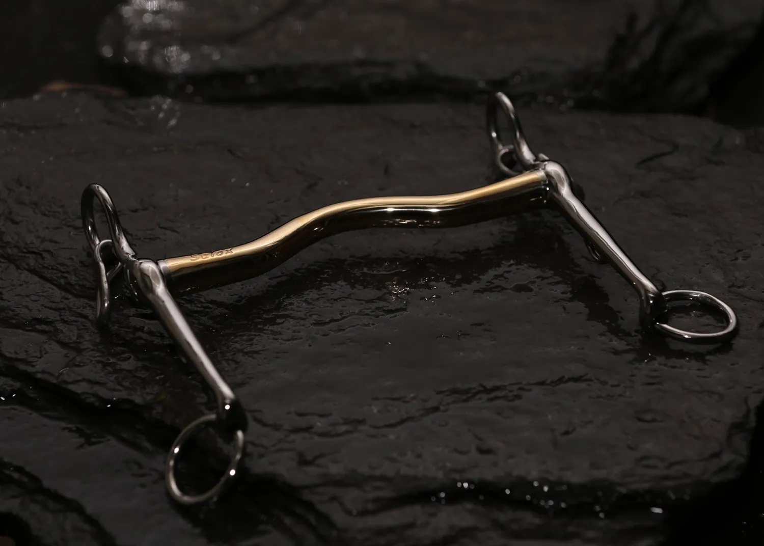 3) Neutral taste. Salox Gold is low in bioactivity. It promotes a quiet, receptive mouth by discouraging the horse to explore the bit for taste. The addition of aluminum in the metal, which forms an insoluble alumina (oxide) coating, traps the metal ions that would create taste.