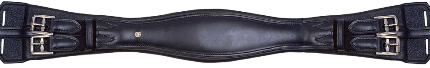 This top-of-the-line Otto Schumacher Dressage Girth is designed to increase your horse’s comfort and performance. Crafted of the finest quality leather, it has subtle contours to avoid your horse’s elbows and allow maximum freedom of movement. Well-padded, yet thin, it is slightly wider in the center to ensure stability and optimal pressure distribution. Elastic at both ends and roller buckles allow ease of use.