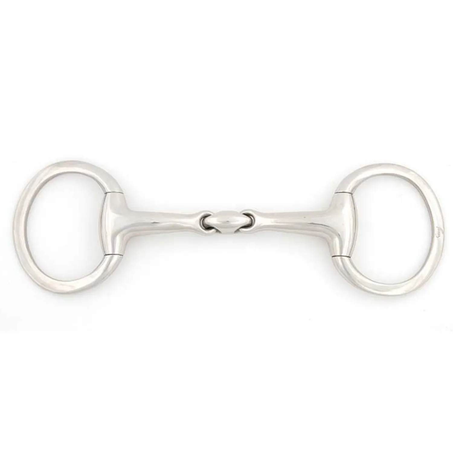 The Metalab Magic System™ Double-Jointed Eggbutt Snaffle is a Level 2 bit made of stainless steel. The 5 1/4″ mouthpiece is 17mm thick. Eggbutt cheeks.
