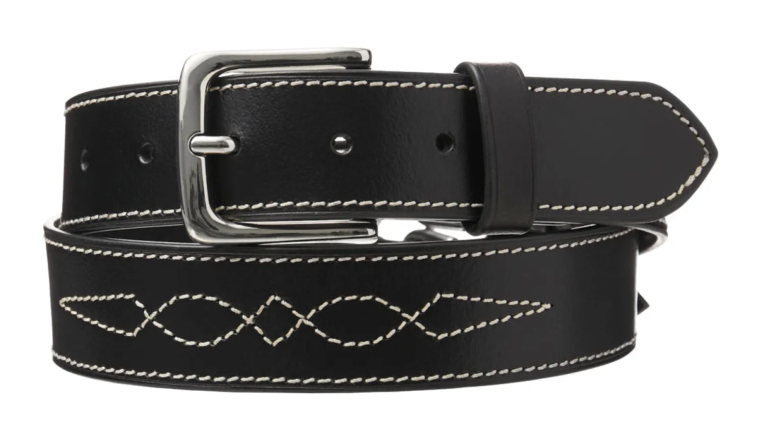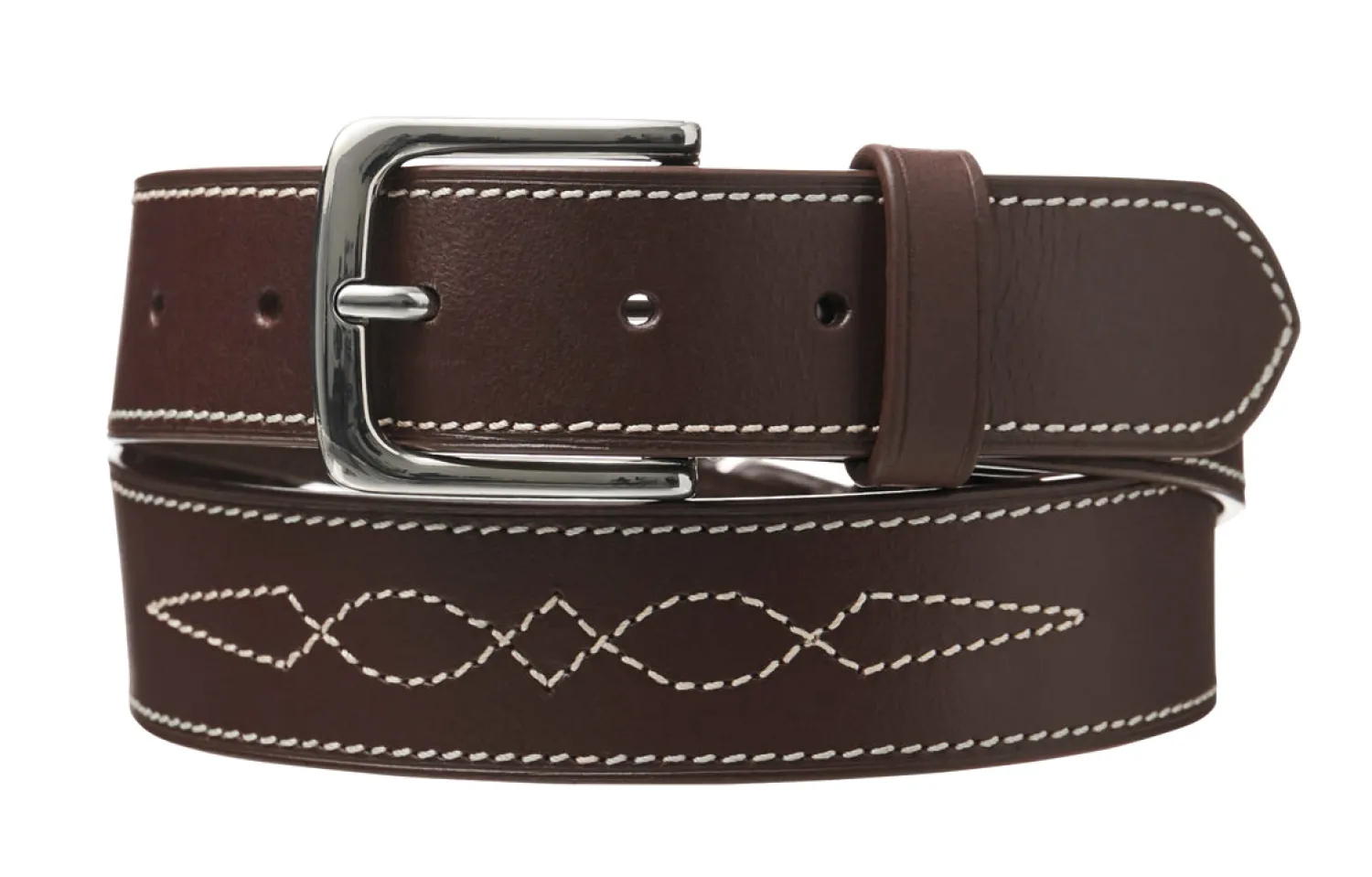 Marshall Leather Belt adds sophisticated equestrian style to your look. Designed by an English saddler, inspired by handcrafted bridlework and made from genuine leather, it has a two-buckle detail on each side. At 1.25″ wide, it fits most fashionable belt loops.
