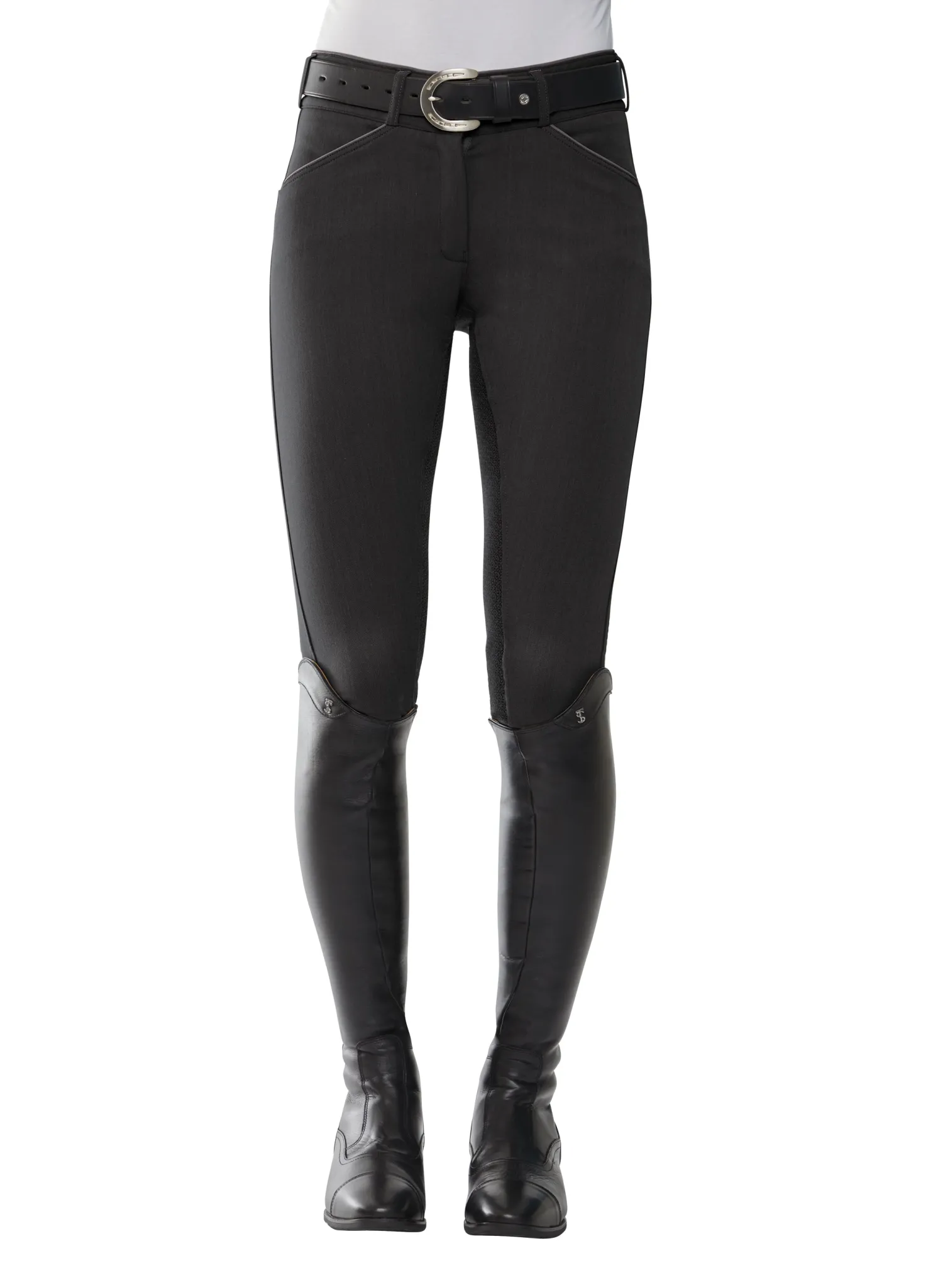 This breech also boasts the mid-rise EquiTrue Rise™, a unique cut that allows it to maintain a flattering, secure fit, staying true to your form as you ride or bend to groom. No matter how you move in the saddle or out, a soft, covered waistband and seat won’t slide, slip, pinch or bind—you’re free to think about more important things than yanking and tugging your breech for modesty.