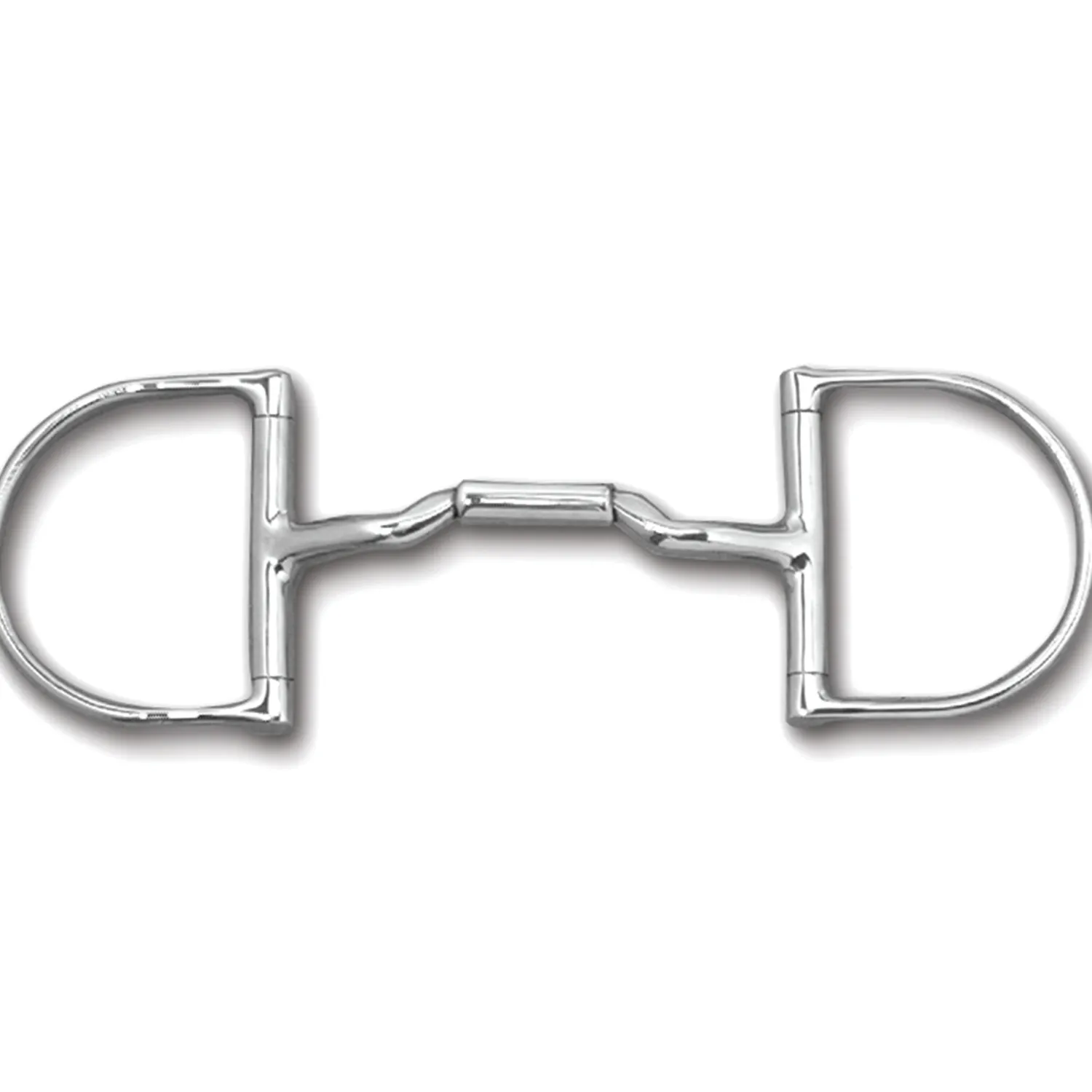The dee without hooks is a traditional D-shaped cheek with fixed attachment of the mouthpiece. This style keeps the mouthpiece from draping on the tongue, providing a more direct signal than the loose ring. The straight side of the dee will not pull through the mouth and does not pinch.