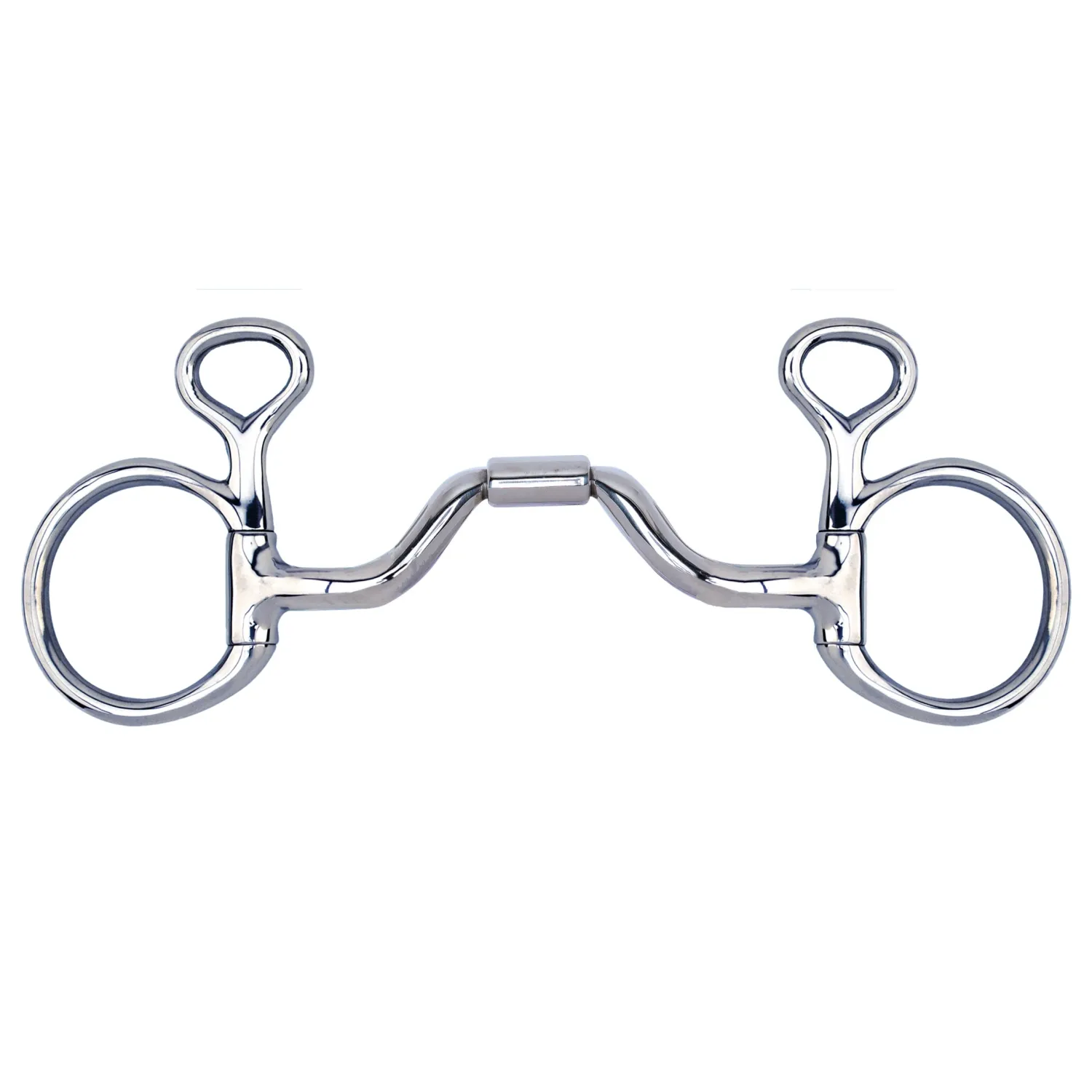 Also known as a “hanging cheek” because the bridle attaches at the purchase. The fixed cheek keeps the bit suspended in the horse’s mouth and prevents it from sliding around in the bridle, giving the rider more control over the mouthpiece than a traditional loose ring. However, the reins remain free to slide. When engaged, the reins will pull back on the cheekpiece and mouthpiece, as well as rotate the purchase forward slightly, creating some poll pressure. Even though it has a fixed cheek, the Baucher is still considered a direct rein action cheekpiece because there is no leverage or curb action.